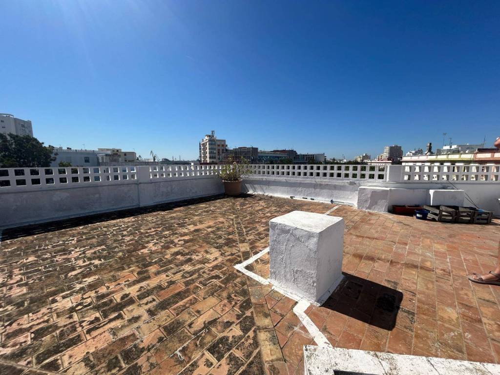 Una oportunidad única en la emblemática zona de Plaza de España! Esta espectacular casa de 165 m2 útiles combina historia y modernidad. La finca data de 1955, fue completamente rehabilitada en 2024 para ofrecerte un hogar contemporáneo y lleno de encanto.Al entrar, te recibe un gran hall de entrada que da paso a un espacio lleno de luz y estilo. La vivienda cuenta con un dormitorio de invitados y un cuarto de baño completo, perfecta para recibir visitas o para uso adicional. La espectacular cocina de diseño industrial, totalmente equipada, es un espacio ideal para los amantes de la gastronomía y el buen gusto, sin renunciar a compartirlo con los tuyos mientras están relajados en el salón.Un exuberante salón con grandes ventanales, invita a la relajación y a disfrutar de la luz natural en un ambiente acogedor. El dormitorio principal, muy amplio, comunica en un espacio semiabierto con el salón, creando un ambiente moderno y funcional. Además, dispone de un gran vestidor y otro cuarto de baño completo para mayor comodidad.El suelo de hormigón pulido, las ventanas climalit, los muebles de madera de embero, la iluminación, su forma en U como distribución, aportan un toque de elegancia, diseño y calidez, además de otros detalles que podrás comprobar en tu visita. La vivienda ofrece una maravillosa terraza de uso privativo en la azotea, perfecta para disfrutar del sol y del clima con unas vistas maravillosas al mar y las murallas, este lugar es extraordinario para complemantar una joya de propiedad como la que le ofrecemos.Esta casa es una oportunidad excepcional para vivir en una ubicación privilegiada, combinando historia, diseño y confort. No dudes en contactarnos para más información o para concertar una visita!En cumplimiento del Decreto de la Junta de Andalucía 218/2005 de 11 de octubre y de la ley 10/2025, de 26 de Diciembre, se informa al cliente que los gastos notariales, registrales, ITP, honorarios de intermediación y/o financieros y otros gastos inherentes a la compraventa no están incluidos en el precio. El consumidor tiene, conforme a la normativa vigente, a su disposición información y documentación adicional relativa al inmueble y condiciones de la compraventa, que podrá ser consultada en las sedes físicas de la Agencia y le serán debidamente informados en nuestras oficinas. Estaremos encantados de asesorarle y calcular con usted los gastos inherentes a la compraventa teniendo en cuenta sus circunstancias personales.
