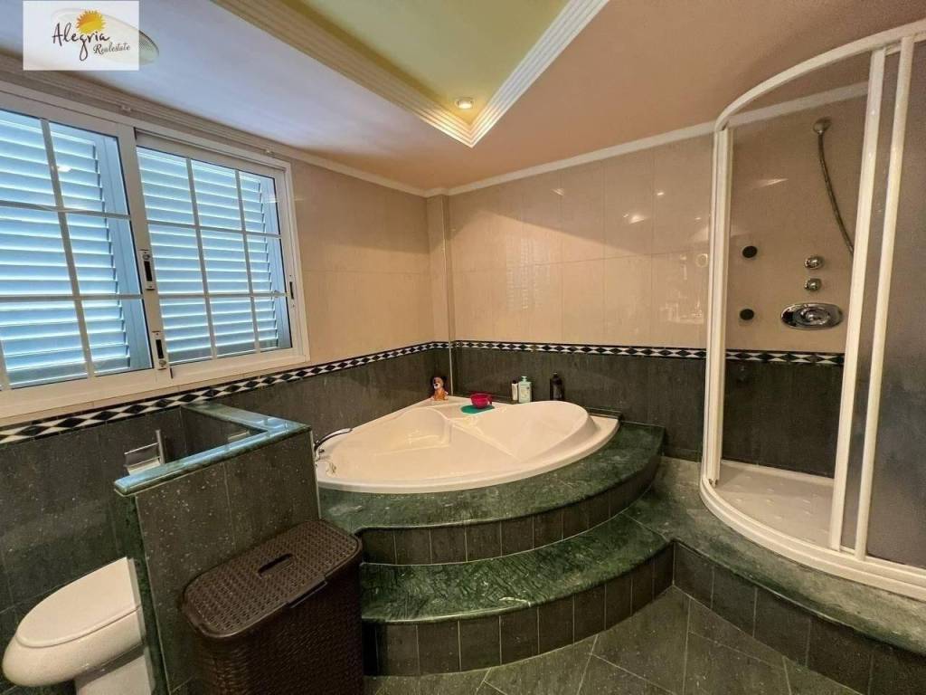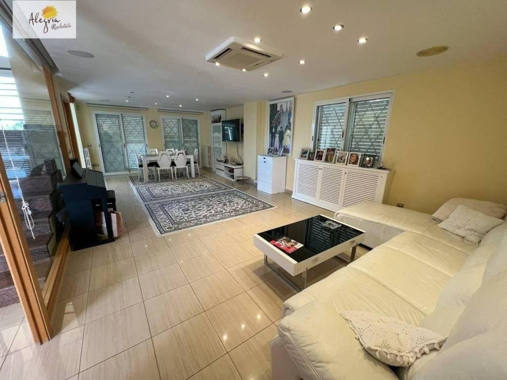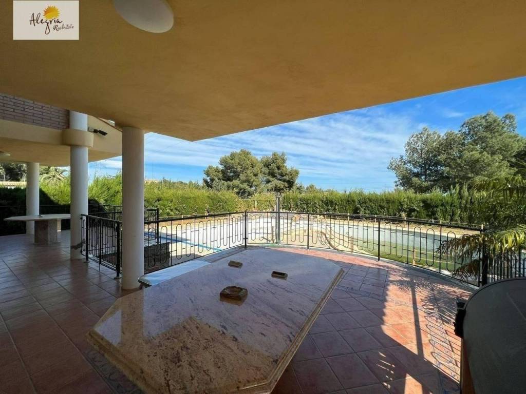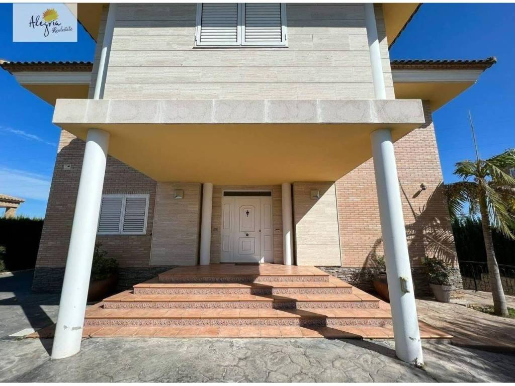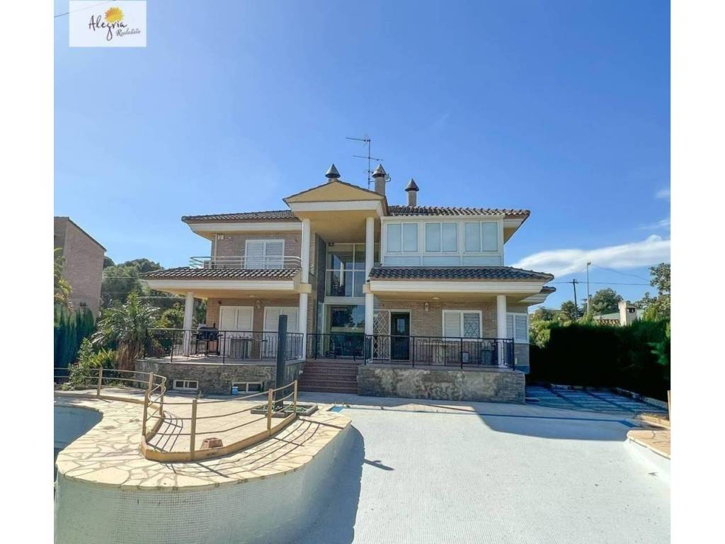 It is a semi-new villa with independent kitchen, 4 bedrooms, 3 bathrooms and 1 toilet, large living room, terrace, balcony, storage room, laundry room, garage for 3 vehicles, closets in all bedrooms, a large swimming pool, paellero. It has air conditioning cold with heat pump, the area is very quiet and has a large entrance porch.