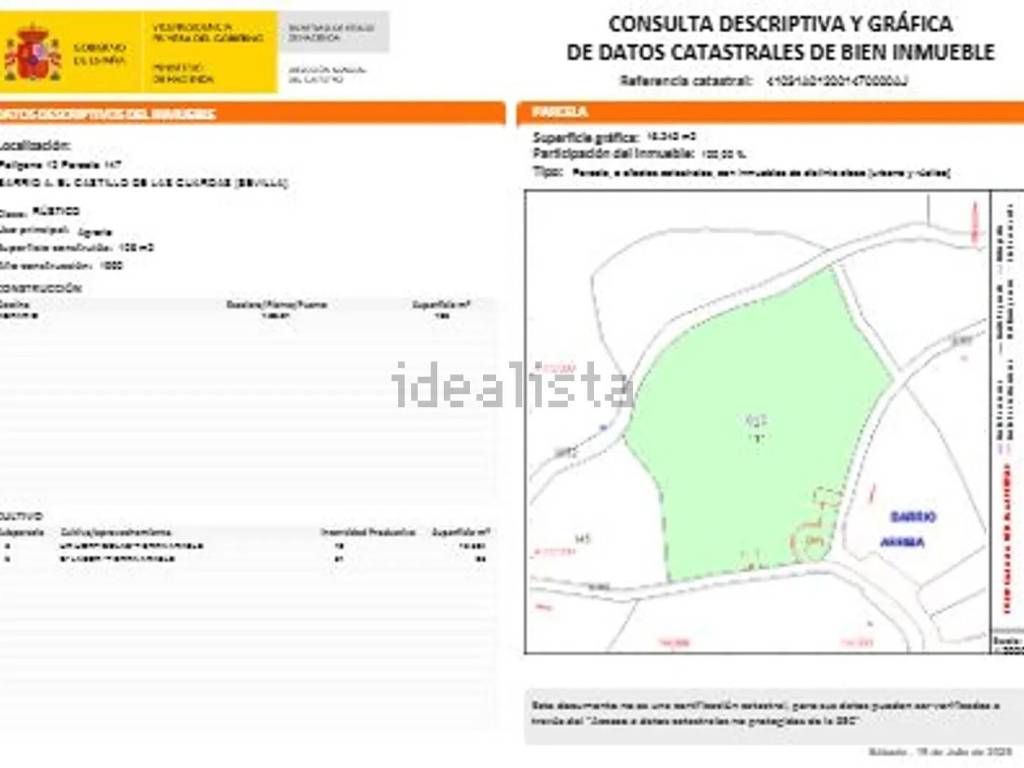 En el término de El Castillo de las Guardas, en una pequeña aldea llamada El Cañuelo, a 50 Km de Sevilla y a medio camino de la Sierra de Aracena, se encuentra esta finca de 2,1 has. con una edificación de reciente construcción que cuenta con más de 400 m2 construidos y que está formado por tres viviendas. La vivienda principal cuenta con dos plantas, con excelentes calidades, donde en la planta baja dispone de un gran salón con chimenea, cocina y comedor, todo en un amplio espacio diáfano, tres dormitorios, un aseo y un baño completo. En la planta alta, abuhardillada, la gran parte del espacio es también diáfano, con techos altos y muchas ventanas, Cuenta además con tres dormitorios y otro baño completo. La vivienda cuenta también con una bodega en el sótano. La segunda vivienda, anexa, dispone también de un salón con cocina en un espacio, sin estrenar prácticamente, dos dormitorios y un baño completo, todo en una planta. La tercera vivienda, igualmente, cuenta con salón con cocina y chimenea, dos dormitorios y un baño completo. La casa dispone de un espacio exterior muy acondicionado, con zona de barbacoa, trastero, leñero, porche, terraza, zona de huerta, frutales… La finca es básicamente un encinar, de oreografía suave, que cuenta además con una construcción a unos metros de las viviendas muy peculiar, con forma de torreta, que actualmente se usa como gallinero. Dispone la finca de luz eléctrica y agua de red. Ideal para proyecto turístico, grupo de amigos o familias. Con una ubicación excelente, a 40 minutos de Sevilla. De acuerdo con lo previsto en el decreto 218/2005, de 11 de octubre, se informa al cliente que los gastos notariales, registrales, impuesto de transmisiones, honorarios de intermediación y otros gastos inherentes a la compraventa no están incluidos en el precio.