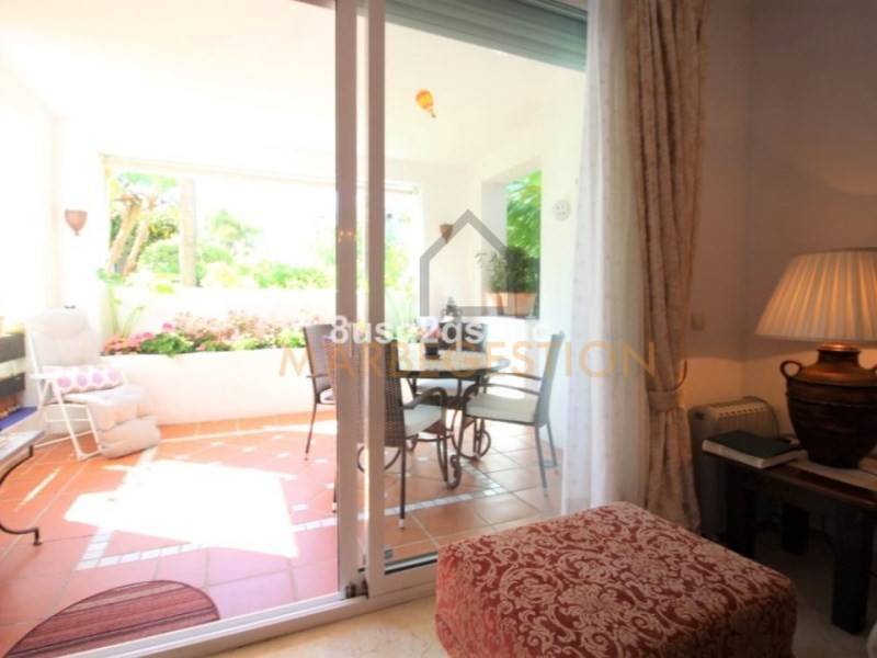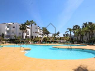 Vivienda en venta en la prestigiosa Urbanización de Costalita, situada a 50 metros de la playa y senda litoral de Estepona. Se trata de un apartamento en planta baja con orientación Sur, situado muy cerca de la piscina pero sin el ruido de ésta, consta de 2 dormitorios y 2 baños completos, uno de ellos en suite y con ducha. El dormitorio principal tiene acceso a la terraza. Amplio salón comedor con chimenea eléctrica, así como, aire acondicionado frío/calor. La cocina está totalmente renovada con mobiliario de diseño italiano y cuenta con un espacioso lavadero. La vivienda forma parte de una Urbanización privada con vigilancia 24 horas y preciosos jardines tropicales con fuentes, estanques de peces y puentes de madera, ideal para pasear dentro de la urbanización y con acceso directo a la playa y senda litoral donde podrás disfrutar de un entorno maravilloso hasta Estepona.