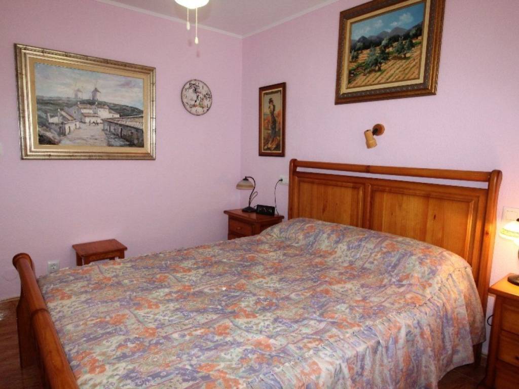 Independent Villa with spacious garden, terraces, swimming pool and garage on large plot. It consists of 2 houses: the main house on the ground floor and the other house on the semi-basement floor. The main house consists of a large living room with chimney and huge terrace, a fully equipped independent kitchen with access to the garden, 3 double bedrooms with fitted wardrobes and 2 bathrooms (one in suite with main bedroom). Furnished. Air conditioning. Heating. The other house on the semi-basement, attached to the main house, consists of a living room, a small kitchen, 2 double bedrooms with fitted wardrobes and a bathroom. Furnished. Ideal as a guest house! All located on a plot of approximately 900 m2 with gardens, terraces, trees, BBQ, swimming pool, 2 garages (one with complete bathroom), room for storage, in quiet environment. Near all services, restaurants, supermarket, chemist and about 3 km from the beach. Access to the AP7 motorway that connects with the Airports of Alicante and Murcia at 1 km.