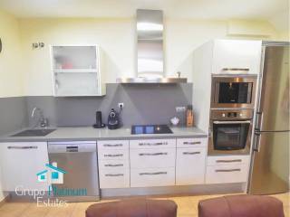 Al entrar en la vivienda, encontramos una amplia zona de salón, con mucho espacio y luminosidad. Al bajar las escaleras para acceder a la planta inferior, se encuentra una amplia cocina con comedor.