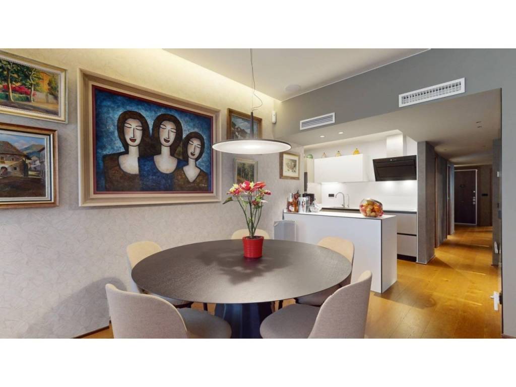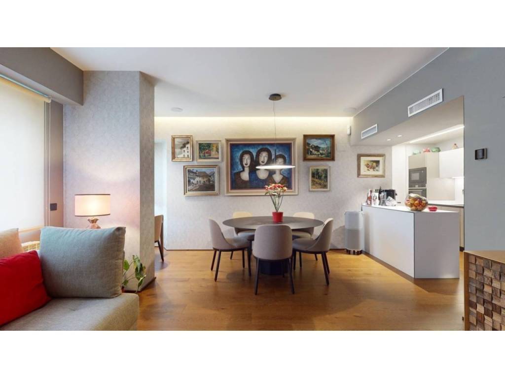 Al ingresar, la entrada principal nos invita a deleitarnos con cada rincón desde el minuto uno, dándonos paso al acogedor salón-comedor, donde la luz indirecta por led resalta sus elegantes detalles. La moderna cocina abierta al salón y equipada con todos los electrodomésticos de alta gama, concede un toque de integridad y armonía a toda la estancia.