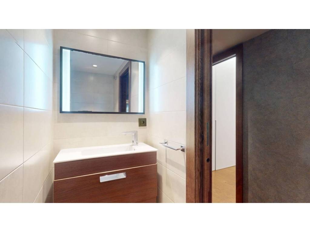 El baño principal, de estilo elegante y espacioso, ofrece una experiencia de lujo con plato de ducha, doble lavabo y toallero radiador, todo ello complementado con iluminación indirecta y espejos, de selectos acabados. Además, la propiedad cuenta con un aseo adicional que añade comodidad y funcionalidad a la vivienda, con grifos eléctricos con sensor en los lavabos.