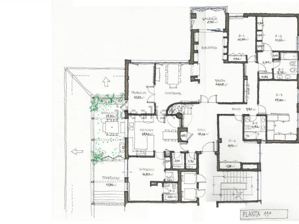 Impresionante ático dúplex de dos plantas situado en las plantas 11 y 12 de un edificio representativo, con vistas despejadas y una luz natural excepcional.La vivienda destaca por su exclusiva terraza de 100 m2 en la planta superior, que ocupa toda la última planta del edificio e incluye una piscina privada ideal para disfrutar del buen tiempo con total privacidad. En la planta principal cuenta con otra magnífica terraza de 40 m2, perfecta para comidas al aire libre.Distribuido en cinco dormitorios con armarios empotrados y tres baños completos, este ático combina amplitud y elegancia. La sala de estar-comedor de 47 m2 conecta con una acogedora terraza acristalada que amplía la zona de descanso. La cocina amueblada tiene salida directa a una terraza adicional de 40 m2, accesible también desde el comedor.Destacan sus puertas antiguas de anticuario de gran valor, que aportan un toque único y distinguido a la vivienda.Incluye 2 plazas de garaje y trastero en el precio. Edificio con ascensor.Un inmueble singular, lleno de encanto y espacios exteriores, perfecto para quienes buscan amplitud, privacidad y una vivienda exclusiva. Mejor verlo en persona!