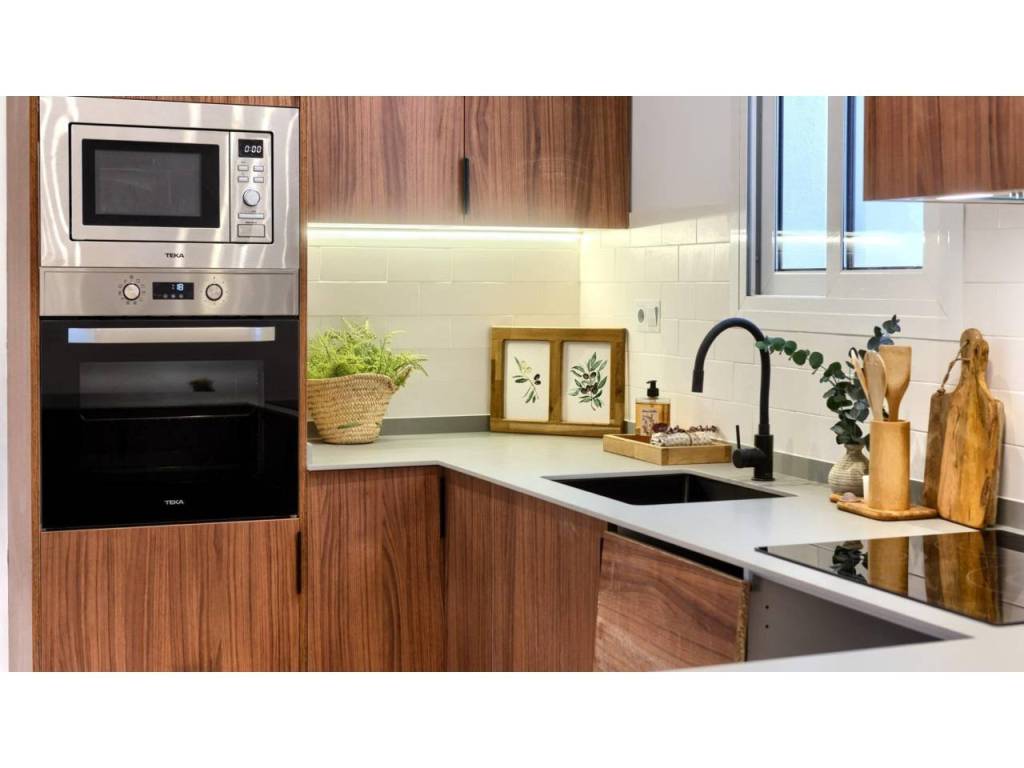 • Cocina amplia: Equipada con electrodomésticos integrados (horno, microondas, vitrocerámica y campana) y una zona de lavandería independiente muy funcional.