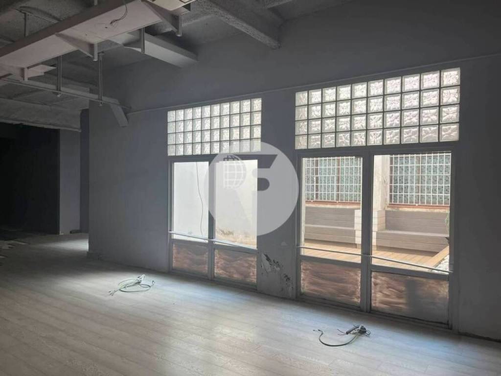 Local comercial ubicado en el distrito del Eixample Esquerre, a escasa distancia de la Plaza Tetuán y el Pº de Sant Joan. El local tiene una superficie total de 556 m² distribuidos en planta baja de 380 m² y planta sótano de 176, dispone además de un patio privado. Techos altos con luminarias suspendidas y empotradas, paredes de ladrillo visto, climatización mediante Fan-Colis Parquet.