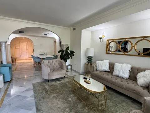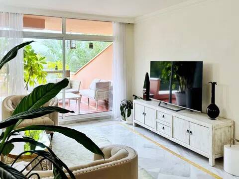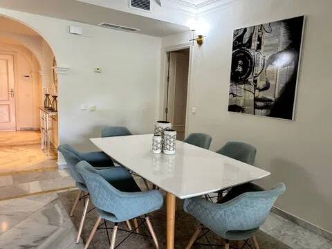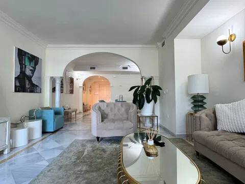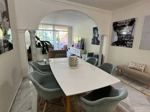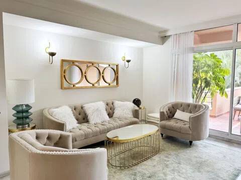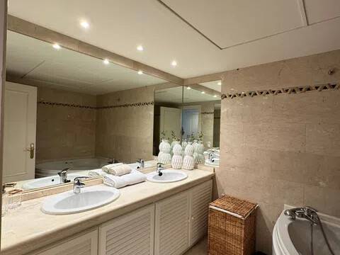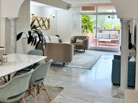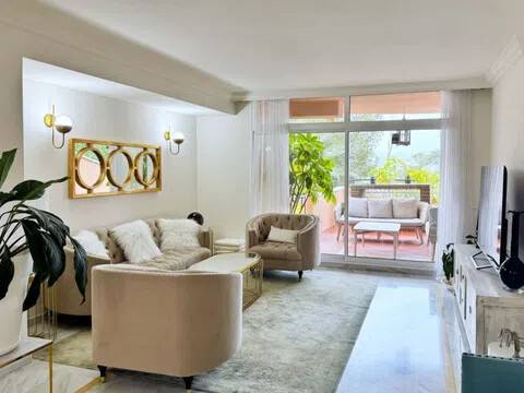 Ubicado en la exclusiva urbanización MAGNA MARBELLA, en el corazón de Nueva Andalucía, se encuentra este elegante apartamento de dos dormitorios y dos baños que refleja la sofisticación y el lujo. Recientemente decorado con muebles de diseño, este espacio está listo para ser habitado y ofrece una experiencia de vida contemporánea. El apartamento cuenta con una cocina independiente, espaciosa y completamente equipada, que se integra armoniosamente con el amplio salón. Tanto el salón como el dormitorio principal ofrecen acceso a una impresionante terraza, proporcionando un lugar perfecto para disfrutar del clima mediterráneo y las vistas panorámicas. La orientación sur-este garantiza una luminosidad excepcional y permite disfrutar de vistas a la majestuosa montaña de La Concha y al sereno mar. La propiedad incluye una plaza de parking y un trastero, proporcionando comodidad adicional y espacio de almacenamiento. Además, existe la posibilidad de negociar un trastero y plaza de aparcamiento adicionales, brindando flexibilidad a los futuros propietarios. Con detalles de alta calidad y una ubicación privilegiada, este apartamento en Magna Marbella ofrece un estilo de vida exclusivo en una de las zonas más codiciadas de la Costa del Sol. Un hogar que combina la elegancia moderna con la serenidad de las vistas, creando un ambiente único y distinguido para aquellos que buscan lo mejor en bienes raíces. LA URBANIZACIÓN La prestigiosa urbanización Magna Marbella, situada en el corazón de Nueva Andalucía, cautiva con su elegancia y comodidades excepcionales. Rodeada de campos de golf y disfrutando de cuidados y extensos jardines, esta joya inmobiliaria ofrece una experiencia de vida exclusiva. Los apartamentos de lujo, meticulosamente diseñados y decorados, se integran armoniosamente en el entorno, brindando a los residentes un hogar sofisticado con vistas espectaculares a la montaña de La Concha y al mar Mediterráneo. La urbanización cuenta con varias piscinas, creando oasis de relajación en medio de la belleza natural. Magna Marbella se erige como un enclave privilegiado, donde la calidad de vida se fusiona con la opulencia y la serenidad, ofreciendo un estilo de vida inigualable en la Costa del Sol. LA ZONA Nueva Andalucía, en Marbella, es un enclave encantador que combina el esplendor natural con la sofisticación urbana. Reconocida por sus campos de golf de clase mundial y villas de lujo, esta zona también ofrece acceso a colegios internacionales de alta calidad, lo que la convierte en una opción atractiva para familias. Los residentes disfrutan de la proximidad a la playa, la opulencia del Puerto Banús y una variedad de opciones de entretenimiento. Además, la presencia de colegios internacionales proporciona una comodidad adicional para aquellos que buscan una educación global para sus hijos. Nueva Andalucía se presenta como un destino completo que combina lujo, comodidad y una rica oferta cultural en la hermosa Costa del Sol.