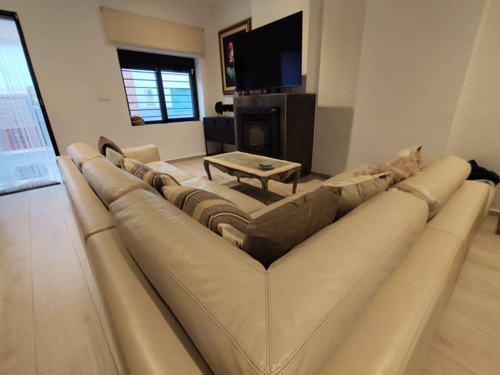 En la planta baja encontramos un acogedor salón-comedor con chimenea de pellets, que cuenta con conducto de aire caliente al dormitorio principal, creando un ambiente cálido y confortable en invierno. El salón está presidido por un sofá Roche Bobois, firma internacional de alta gama, que aporta carácter y elegancia al espacio. Dispone además de cocina moderna totalmente equipada, baño completo y una habitación versátil ideal como dormitorio, despacho o cuarto de invitados.