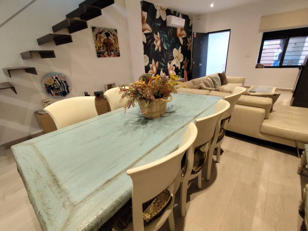 La vivienda cuenta con aire acondicionado y bomba de calor en ambas plantas, lo que permite vivir con total confort en cualquier época del año. Además, dispone de 3 habitaciones (matrimonio, individual y dormitorio en planta baja), 2 baños completos y terraza privada con barbacoa.