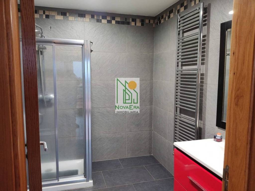 La planta baja está distribuida con un recibidor, cocina totalmente equipada con un gran ventanal, salón comedor, baño y un dormitorio. Y por último, la planta alta, distribuida con 3 dormitorios con armarios empotrados, de los cuales uno es suite y dos baños completos ; uno con bañera y otro con plato de ducha.