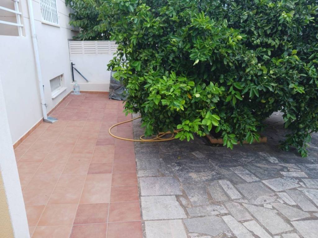 Erdgeschoss: Zugang zum Reihenhaus mit einem kleinen Garten und einer Dusche, über 5 Treppenstufen gelangen Sie zum Haus, durch die Veranda und eine große Terrasse, die das Gebäude umgibt. Im Erdgeschoss befinden sich das Wohnzimmer, eine separate Küche mit Waschküche, ein Schlafzimmer und ein Badezimmer.