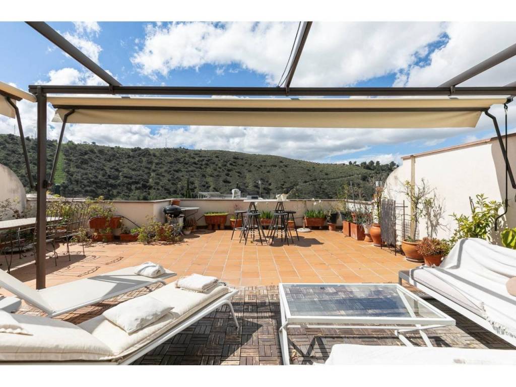 La vivienda se distribuye en tres plantas. En la planta principal se encuentra el salón-comedor, la cocina independiente y un aseo. Desde esta planta podemos acceder a la joya de la casa, una terraza de 71 m2 con vistas totalmente despejadas, perfecta para disfrutar del aire libre en cualquier momento del año.