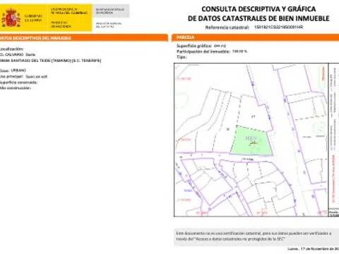 Se vende parcela edificable de 644 m², con un 80% de edificabilidad. Goza de una excelente ubicación en esquina en el centro de Tamaimo, al sur de Tenerife, a pocos kilómetros de la localidad de Los Gigantes y Puerto de Santiago. Este terreno ofrece un gran potencial de construcción. También se puede vender en parcelas más pequeñas; consulte precios en nuestra agencia.
