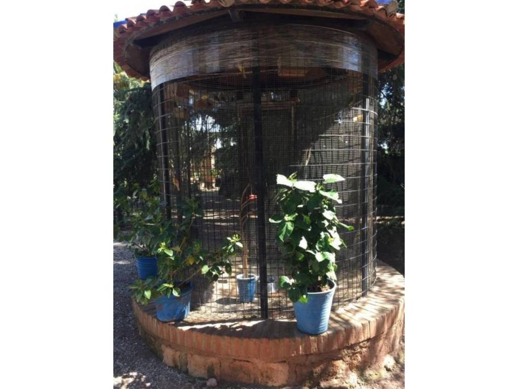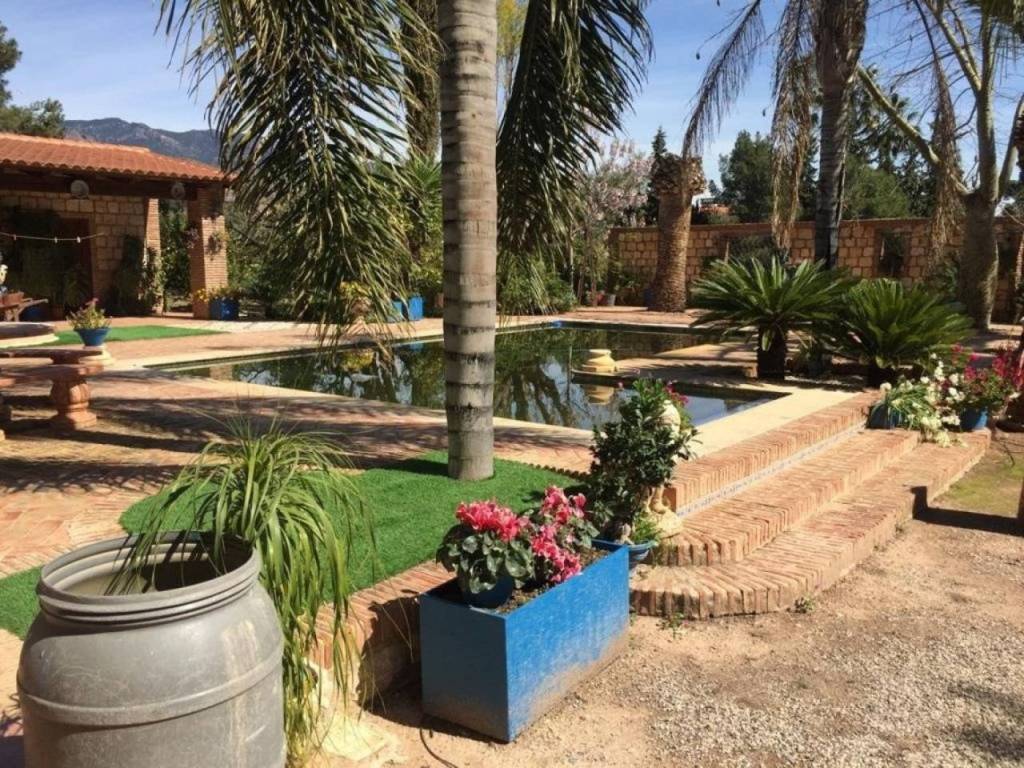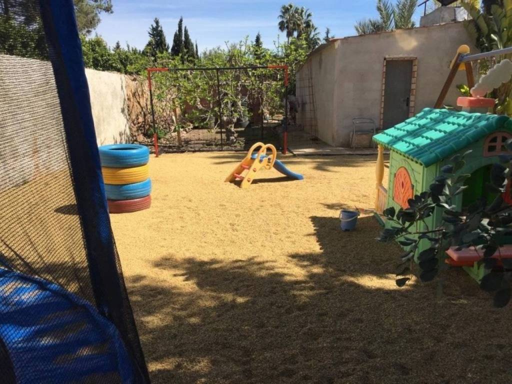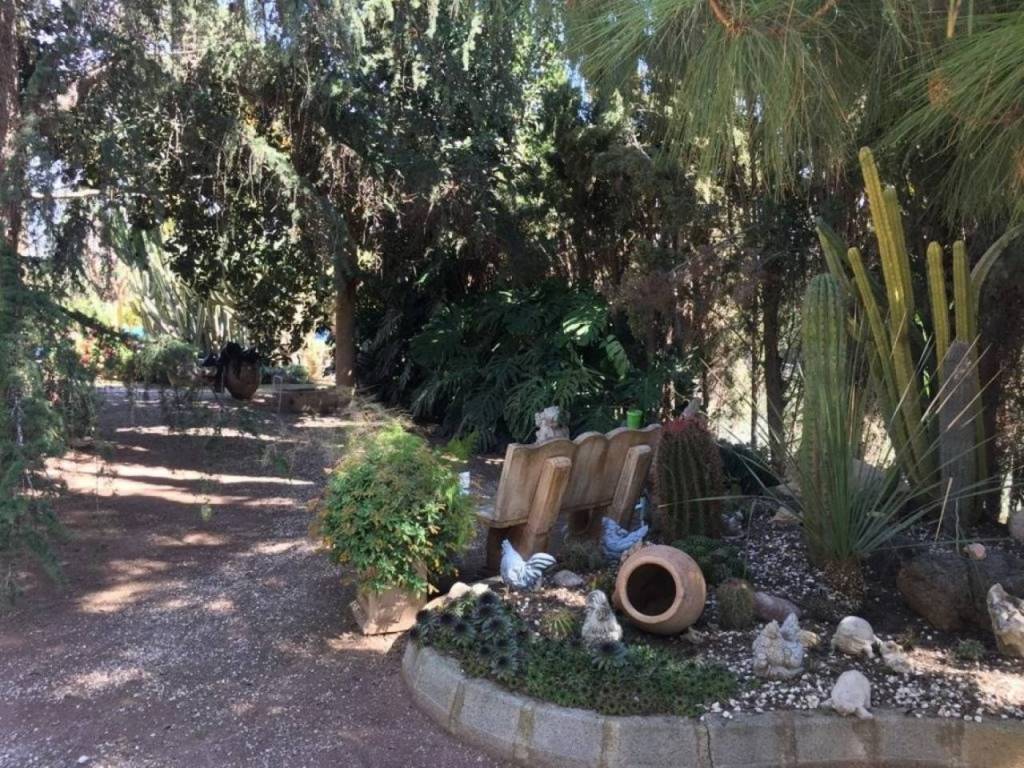 Además, tiene una piscina privada con un jardín bien cuidado, barbacoa, parque infantil y una pajarera. También tiene aparcamiento para cuatro coches, huerto de 62 olivos y frutales variados que se riegan con el agua del trasvase (200 metros cúbicos).