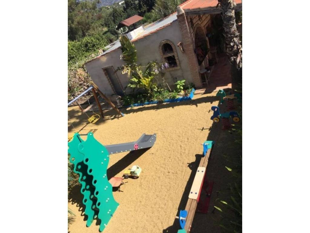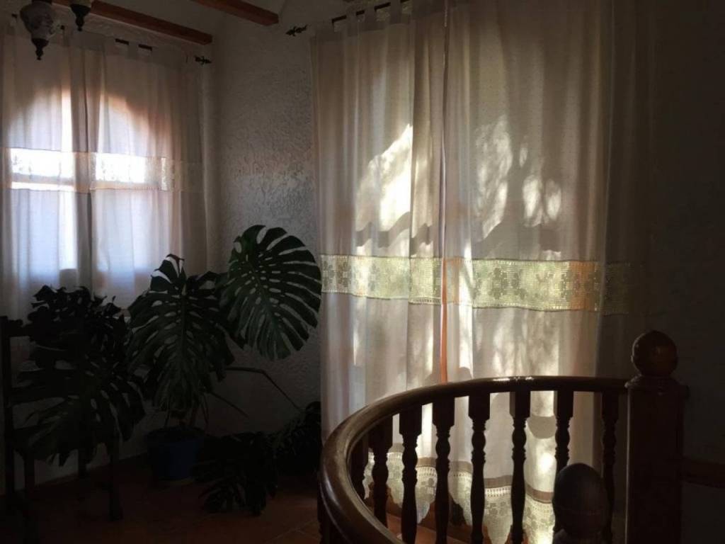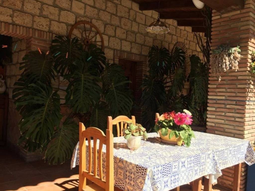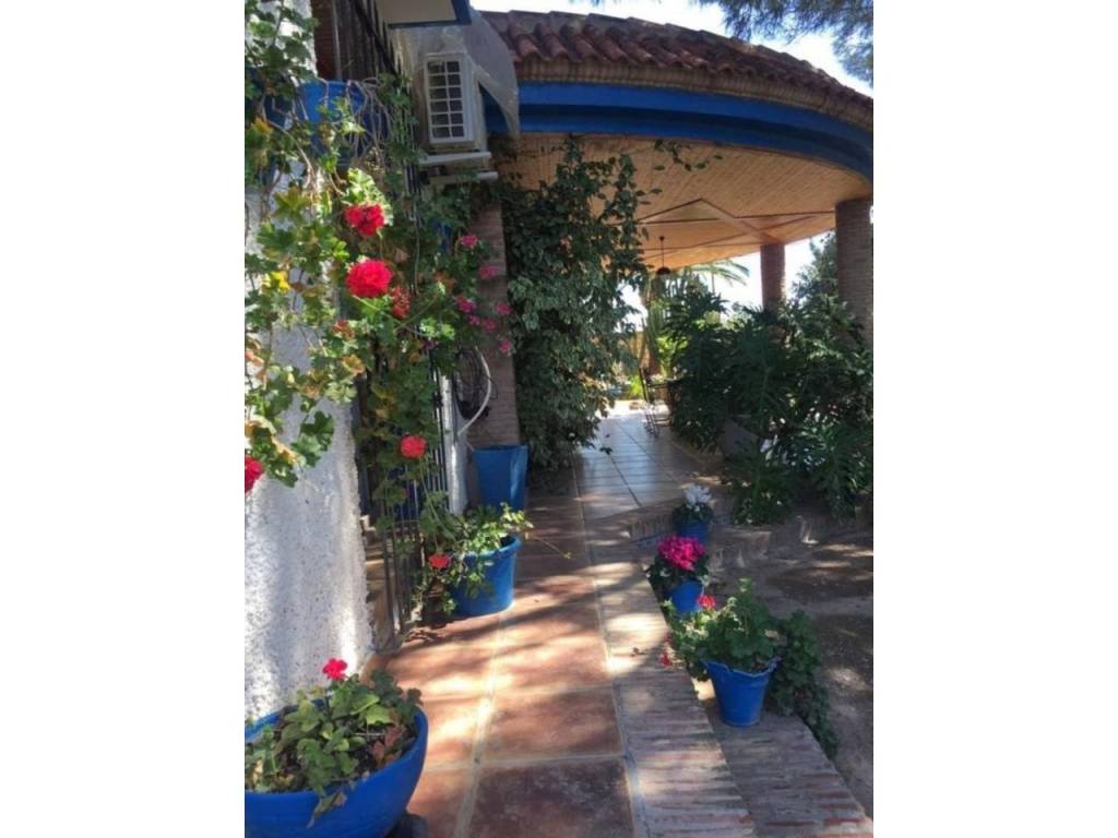 Además, tiene una piscina privada con un jardín bien cuidado, barbacoa, parque infantil y una pajarera. También tiene aparcamiento para cuatro coches, huerto de 62 olivos y frutales variados que se riegan con el agua del trasvase (200 metros cúbicos).