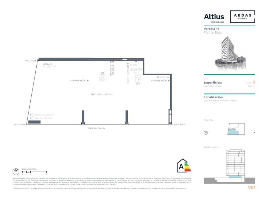 En el corazón de Pamplona, dentro de la prestigiosa zona de Ensanche, se encuentra disponible este LOCAL en alquiler que promete ser la ubicación ideal para su próximo proyecto comercial. Estratégicamente situado en una de las áreas más demandadas de la ciudad, lindando con Calle San Fermín y Avenida Baja Navarra, muy cercano a las líneas de autobús y al caso viejo así como al parque de la Media Luna, a la calle Olite y Carlos III lo hacen ideal para cualquier tipo de actividad: hostelería y restauración, ya que posee salida de humos, comercio,.. Cuenta con una superficie de 136 metros cuadrados construidos, al ser parte de un edificio de reciente construcción, completado en el año 2024, dispone de las últimas innovaciones en diseño arquitectónico y eficiencia energética.La impresionante fachada del local asegura que su negocio destaque y atraiga la atención de peatones y clientes potenciales que frecuentan esta concurrida área de Pamplona-Iruña. La amplia superficie interior permite una distribución versátil, adaptable a las necesidades específicas de su negocio, ya sea un restaurante, una boutique, una oficina o cualquier otra actividad comercial que requiera un espacio bien ubicado y de calidad.En cuanto a las comodidades, el local ofrece instalaciones modernas que incluyen conexión a servicios de electricidad, agua y equipamiento para aire acondicionado, asegurando así un alto nivel de confort para usted y sus futuros clientes. Además, el acceso al local es sencillo y conveniente, con infraestructuras de transporte público cercanas y opciones de estacionamiento disponibles en la zona, lo que facilita la llegada de los visitantes.No lo dudes ven a visitarlo, concierta ya tu cita!Le invitamos a contactarnos para resolver cualquier duda o recibir más información sobre esta excelente oferta.