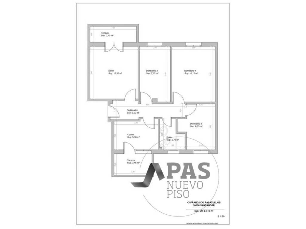 Inmobiliaria PAS nuevopiso tiene para ti un estupendo piso de 3 habitaciones en la demandada zona de Francisco Palazuelos, Santander. A reformar, oportunidad única para adaptar a tu gusto en una ubicación muy solicitada. Amplio y luminoso piso de tres dormitorios con un baño. El salón dispone de una terraza orientada al sur que aporta luz natural y un espacio exterior agradable. El inmueble cuenta con una estructura de hormigón y una distribución eficiente que permite múltiples posibilidades de reforma para modernizar y optimizar los 55 m² útiles. Ideal como primera vivienda o inversión. Consulte condiciones y visite sin compromiso. ¡Le ayudamos a convertir esta vivienda en su hogar ideal! Solicita tu cita en Inmobiliaria PAS Nuevopiso por teléfono o whatsapp en el número 942212600, o si lo prefieres, pásate por nuestras oficinas en c/Jesús de monasterio nº 1, frente al Ayuntamiento de Santander. El precio de venta no incluye impuestos, gastos de notaria y registro, ni el 2% más IVA de honorarios de la agencia. Visita nuestra web pinchando en el logo