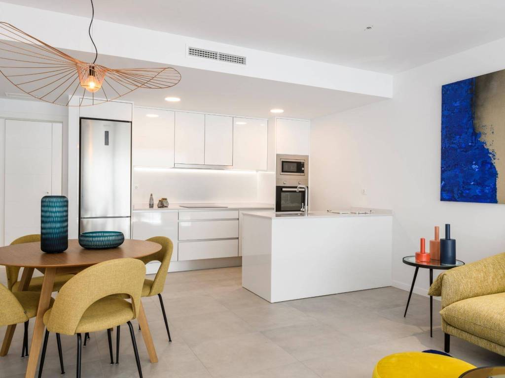 Seagardens - Vivienda de obra nueva en Campoamor Precio: 370.100 Ubicación: Fase 5, escalera 7, planta 5, vivienda A Superficie construida: 123,58 m2 Habitaciones: 3 | Baños: 2 Terraza: 19,48 m2 cubiertaUn hogar diseñado para el confortEste moderno apartamento en Seagardens, un exclusivo residencial en Campoamor (Orihuela Costa), ofrece espacios amplios, diseño contemporáneo y materiales de alta calidad. Su distribución funcional maximiza la comodidad y la luminosidad, con una gran terraza para disfrutar del aire libre.Zonas comunes premium Piscina climatizada interior Piscina exterior y piscina infantil Zona deportiva y gimnasio equipado Área de juegos infantiles Espacio para bicicletas Sala gourmet junto a la piscina Chill-out en la azotea para veladas inolvidablesEficiencia energética y confort acústico Aislamiento térmico: Sistema SATE en fachada, reduciendo la pérdida de energía. Aislamiento acústico: Máxima insonorización para privacidad y tranquilidad.Ubicación privilegiada Aeropuerto de Alicante: 50 min | Aeropuerto de Murcia: 35 min Playas cercanas: Cala de Campoamor 4 min Playa de la Glea 5 min Playa de Aguamarina 7 min Centros comerciales: Zenia Boulevard 8 min Dos Mares 10 min Centros de salud y hospitales: Centro de salud Orihuela Costa 7 min Hospital Quirón / IMED 15 minExtras y precio final Garaje y trastero (Pack C obligatorio): 18.500 Precio total sin IVA incluidoNo pierdas la oportunidad de vivir en un entorno exclusivo con todas las comodidades! Contáctanos para más información o una visita.