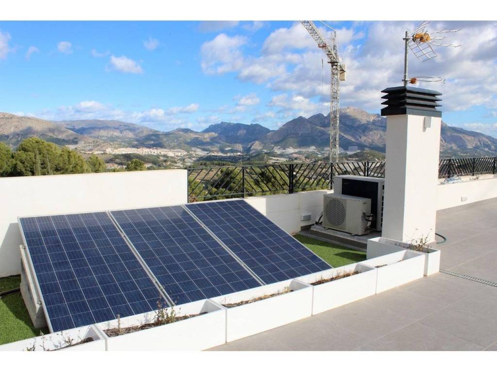 Furthermore, our expansive gardens provide a perfect environment to relax and enjoy the surrounding nature. Energy efficiency is key at Polop Hills, with photovoltaic energy supporting a sustainable and environmentally friendly lifestyle.