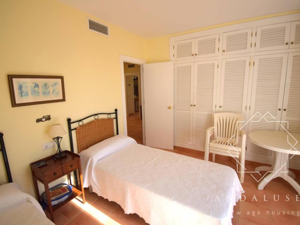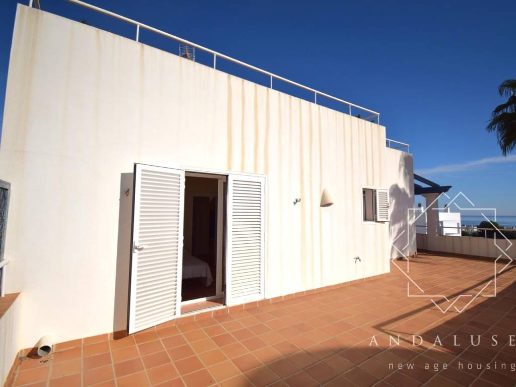 La planta donde se ubican los dormitorios ofrece vistas al mar, aportando una sensación de calma y exclusividad. Además, la vivienda cuenta con una amplia terraza en la planta superior, perfecta como solárium, zona chill-out o mirador para contemplar el paisaje y el azul del Mediterráneo.