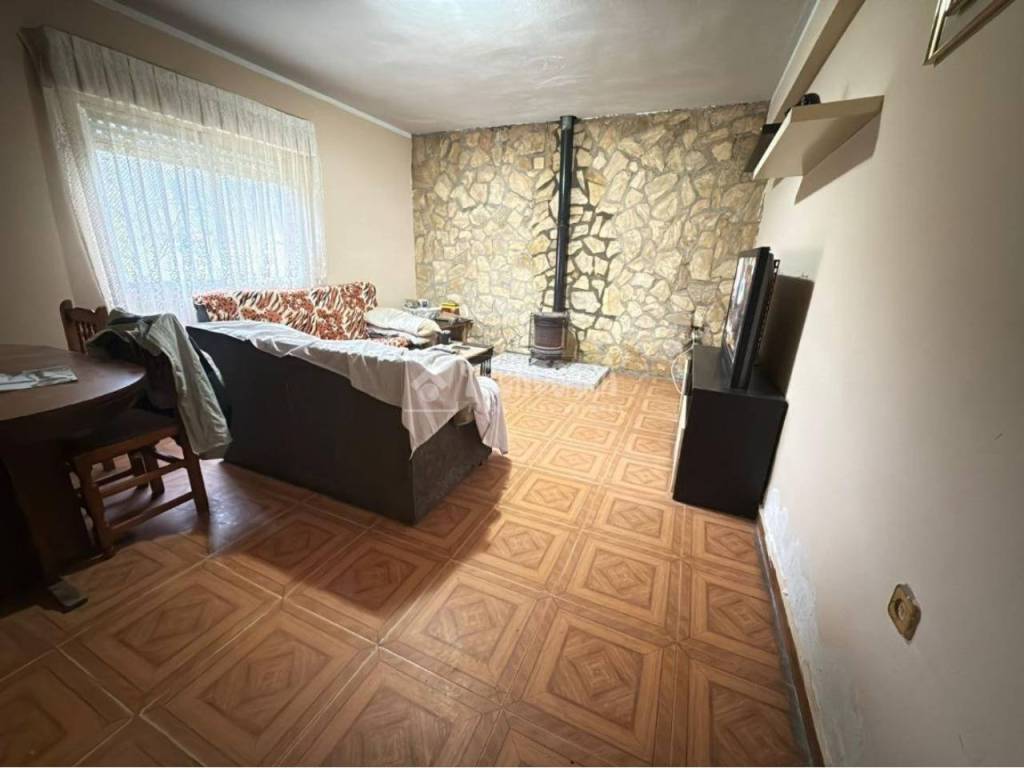 -Amplio SALÓN-COMEDOR con muy buena iluminacion y CHIMENEA. -Cocina amueblada con salida a la parcela. -Dormitorio matrimonial. -Segundo dormitorio doble. -Tercer dormitorio doble. -Baño completo, compuesto por BAÑERA y con ventana al exterior de la parcela. -Porche delantero. -Garaje -Trastero y sala de caldera. -Zona de barbacoa.