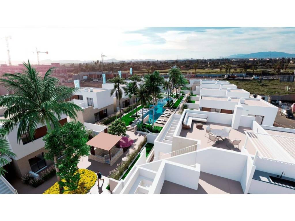 Ubicado en el encantador municipio de Los Alcázares, este conjunto residencial ofrece una selección de 18 propiedades diseñadas para satisfacer las necesidades de quienes buscan un hogar en un entorno privilegiado. La tipología de las viviendas incluye opciones como chalets independientes, bungalows con solarium y bungalows con jardín, adaptándose a diferentes estilos de vida y preferencias. La proximidad al mar, a tan solo 1 km, permite disfrutar de la brisa marina y de agradables paseos por la costa. Además, el aeropuerto se encuentra a 45 km, facilitando el acceso para aquellos que viajan con frecuencia. Estas características hacen de este residencial una opción atractiva para quienes valoran la comodidad y la ubicación estratégica.