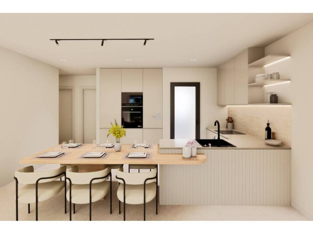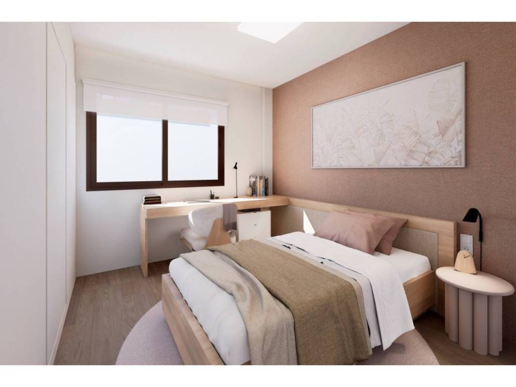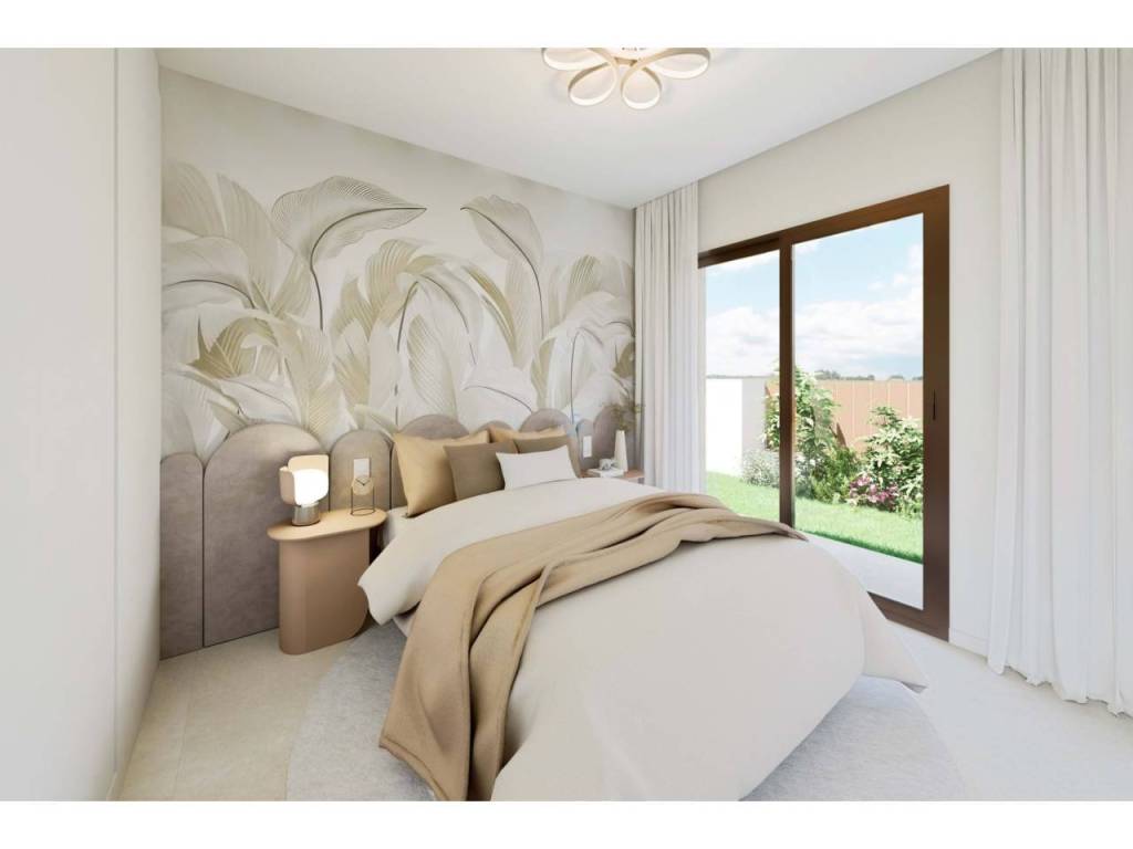 El interior de estas viviendas está diseñado para ofrecer confort y funcionalidad. Con una distribución que incluye tres dormitorios y dos baños, cada espacio está optimizado para el máximo aprovechamiento. Los suelos de gres porcelánico aportan un toque moderno y elegante, mientras que las persianas eléctricas y los electrodomésticos integrados facilitan la vida diaria. Los armarios empotrados ofrecen un almacenamiento eficiente, manteniendo el orden y la estética. Además, la preinstalación de aire acondicionado asegura que el hogar esté preparado para mantener una temperatura agradable durante todo el año. Estos detalles reflejan un compromiso con la calidad y el confort.