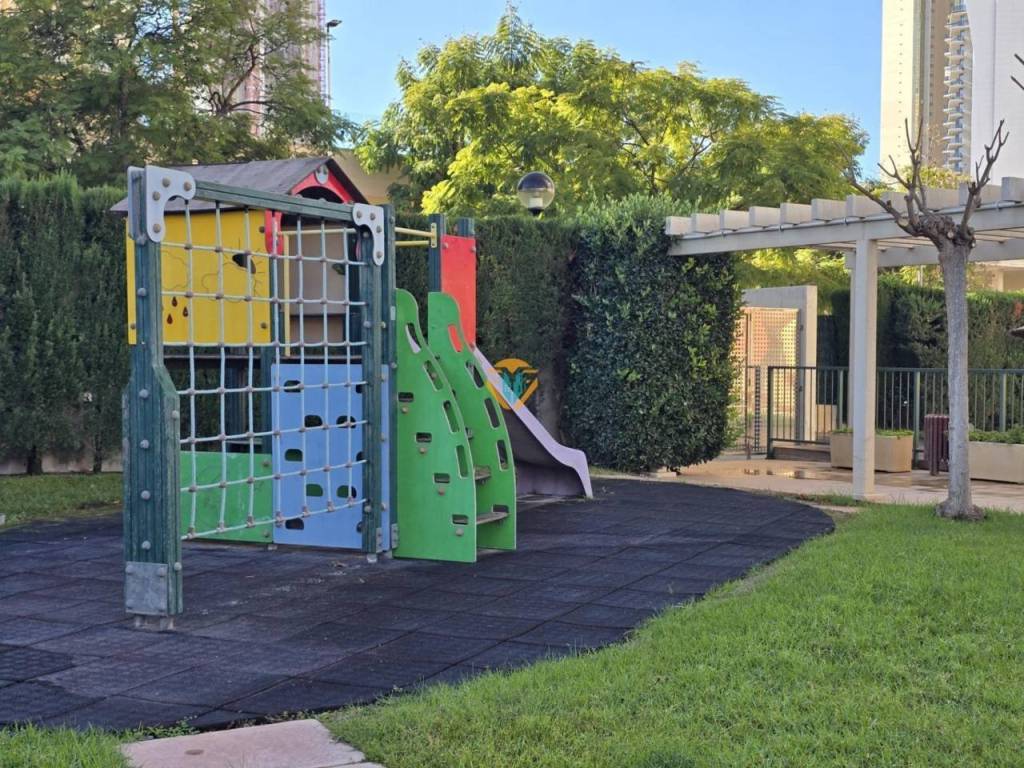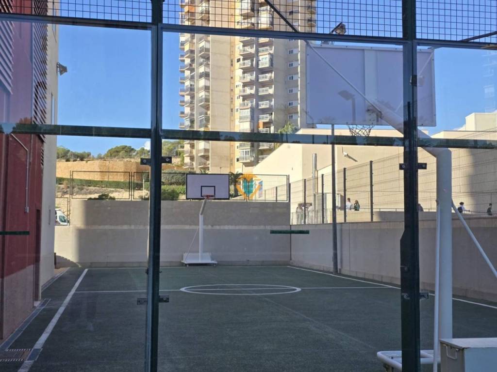 La urbanización ofrece múltiples comodidades como piscina comunitaria , pistas deportivas para practicar baloncesto y tenis , así como áreas verdes ideales para niños incluyendo parque infantil y merendero rodeado por jardines cuidados .