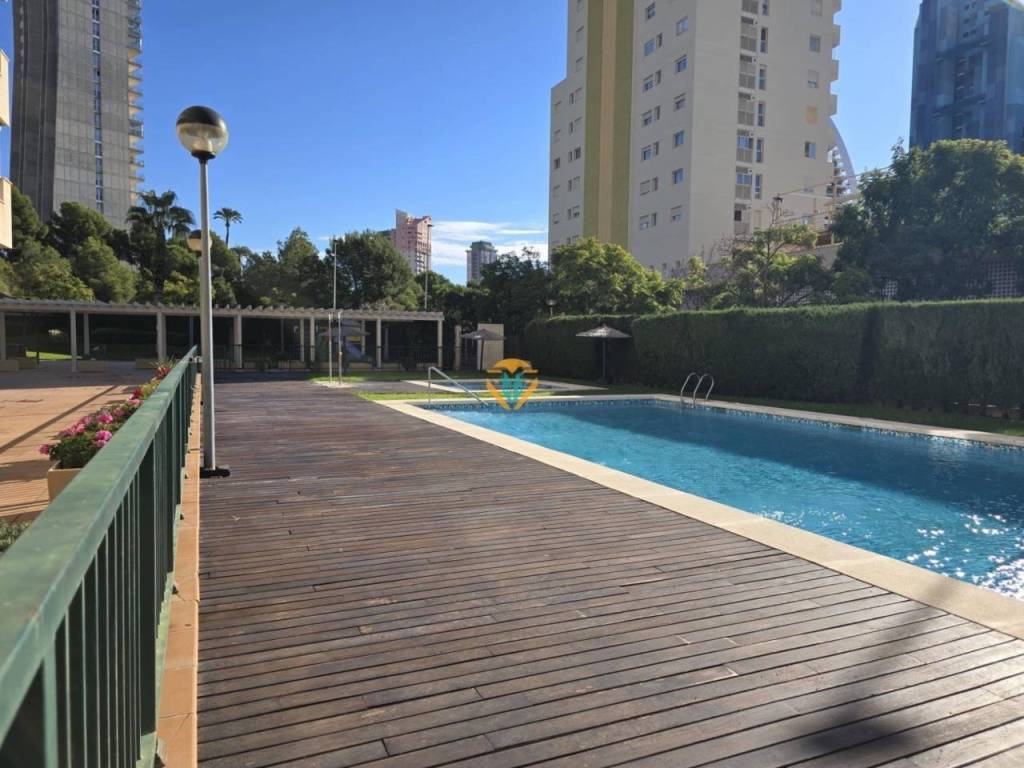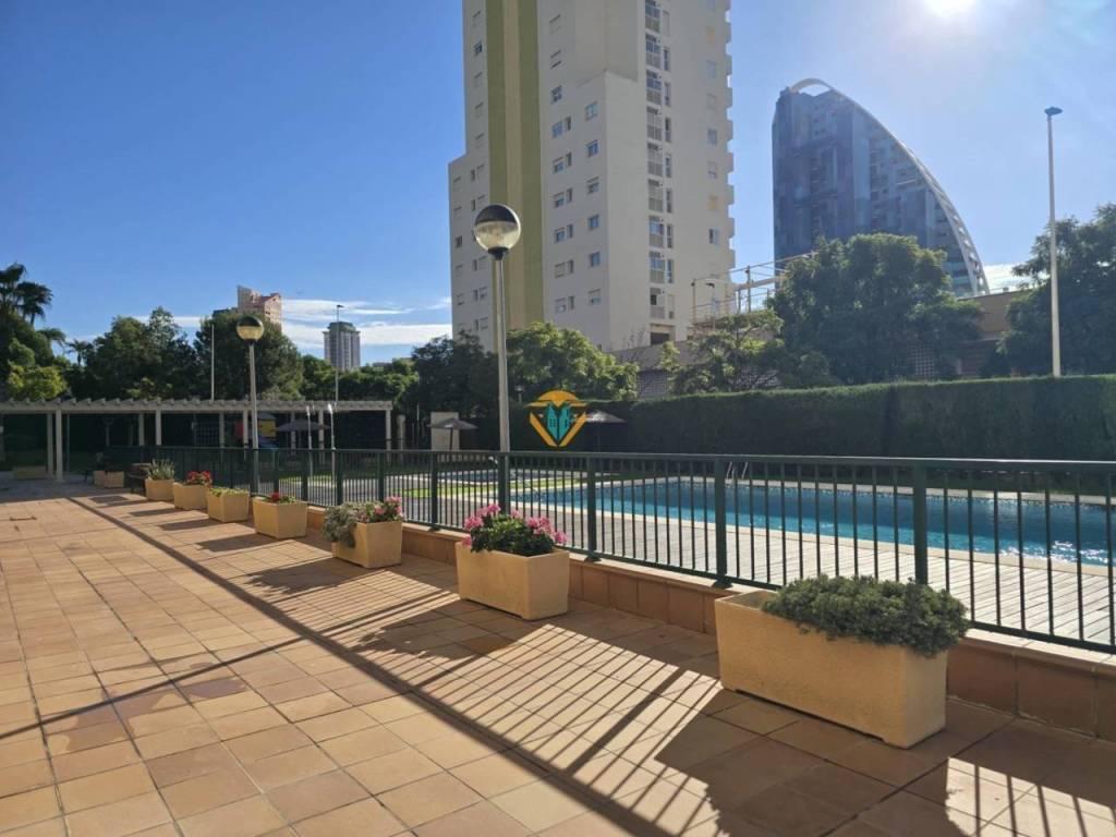 Descubre este espectacular apartamento en la codiciada zona de Via Parque, Benidorm. Con una generosa superficie total de 147 m2 y un espacio útil aprovechable de 77 m2, esta propiedad está lista para entrar a vivir . Su orientación sur garantiza luminosidad durante todo el día mientras disfrutas de impresionantes vistas al mar desde su amplia terraza privada de 12 m2 . Este encantador hogar cuenta con dos habitaciones dobles equipadas con cuatro armarios empotrados que ofrecen óptimo almacenamiento; además posee dos baños completos que aseguran comodidad para toda la familia . La cocina independiente tiene un tamaño funcional (6 m2) y conecta fácilmente con el comedor espacioso (21 m2), ideal para reuniones familiares o cenas entre amigos ️✨.