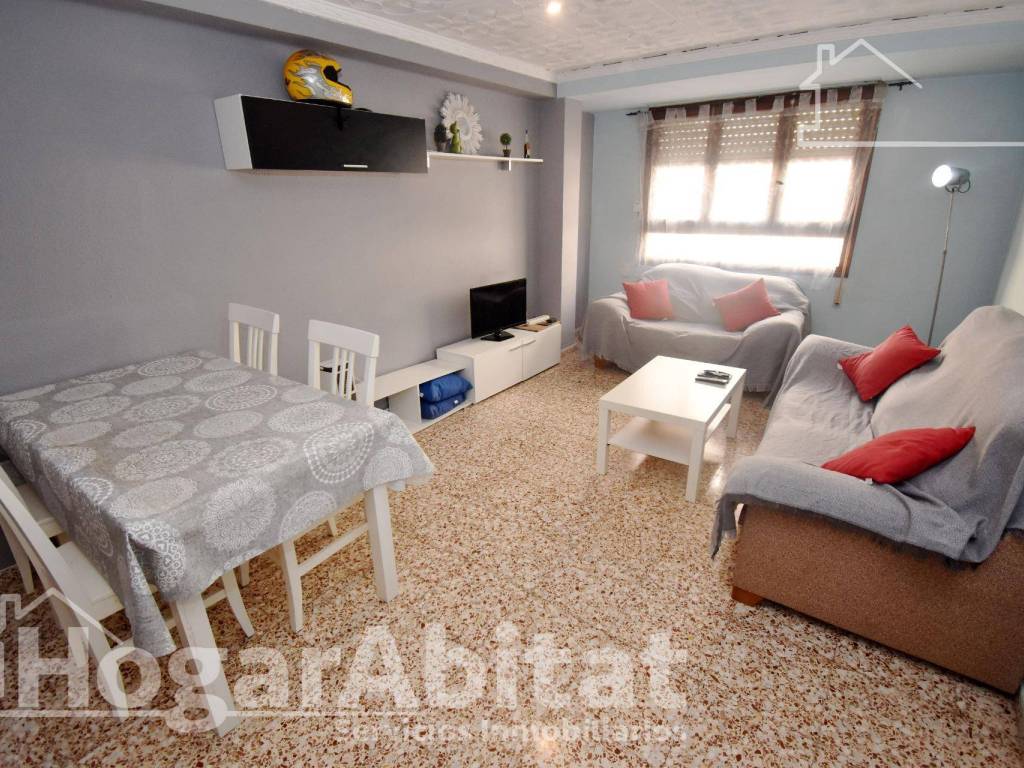110JRJ150 GREAT LOCATION! HIGH CEILINGS, SPACIOUS AND EXTERIOR WITH BALCONYUp to 100% financing (subject to approval by banking institutions)Your chance to live in your dream home has arrived! Discover the spaciousness and brightness of this 122 square metre exterior flat in good condition and very close to Avenida Valencia, with all the amenities you need. It has four bedrooms, three of which are double, and one with access to a balcony. A separate, fully equipped kitchen with a spacious utility room, a large, bright living-dining room, a guest toilet and a full bathroom with shower. Sold fully furnished. The building also has a communal roof terrace. It features high-quality finishes such as wooden windows and doors, terrazzo flooring and a reinforced door. The building has a single-layer façade, a lift, access for people with reduced mobility (PRM) and a video intercom. It is located in a dynamic urban environment, close to all the amenities and services you need. It is close to the CEIP Juan García Ripollés school, Plaza Río Ambentosa, the Consum supermarket and Parque del Oeste park. Don't miss this opportunity! Contact us and request a viewing now.Do you know someone who wants to sell their house? We give you 700 and the guarantee of the best professional service for whoever you recommend. With your help we all win. Consult conditions.And if you are the one selling, we will advance you the money you need and you return it at the sale WITHOUT INTEREST* . We also make repairs and renovations to your house so you can sell it FAST AND AT THE BEST PRICE* (subject to approval).This ad is informative and has no contractual value, it may contain errors. Expenses and taxes are not included.We offer several options for remote visits, please contact us for further information.We donate 3% benefit to NGOs and social action.This advertisement is informative and without contractual value. Expenses and taxes not included. Meet us at our offices in Valencia, Gandía and Castellón CONSENT TO THE PROCESSING OF PERSONAL DATA. To continue you must accept that you have read and agree with the following clauses, understanding that the sending of your data both by email and by means of the contact form of this website presupposes the explicit consent for the treatment of these data in the terms and conditions set forth herein as well as in our privacy policy and legal notice. Go to our website for full text in case of error. HOGARABITAT SERVICIOS INMOBILIARIOS S.L. is responsable for the processing of the Users personal data and informs you that these data will be processed in accordance with the previsions of Regulation (EU) 2016/679 of 27 April 2016 (GDPR) and Organic Law 3/2018 of 5 December (LOPDGDD), so you are provided with the following processing information: End of treatment: maintaining a commercial relationship and sending communications and/or advertising about our products and services. Data retention criteria: data shall be retained for as long as there is a mutual interest to maintain the end of processing and when no longer necessary for that purpose, data shall be deleted with appropìate security measures to ensure the pseudonymisation of the data or the total destruction of the data. Communication of data: Data will not be communicated to third parties, unless legally required. Rights of the user: - Right to withdraw the consent at any time - Right to Access, rectification, portability and deletion of data and to limit or oppose their processing. - Right to lodge a complaint with the Supervisory Authority (agpd.es) if it considers that the processing does not comply with the regulations in force.