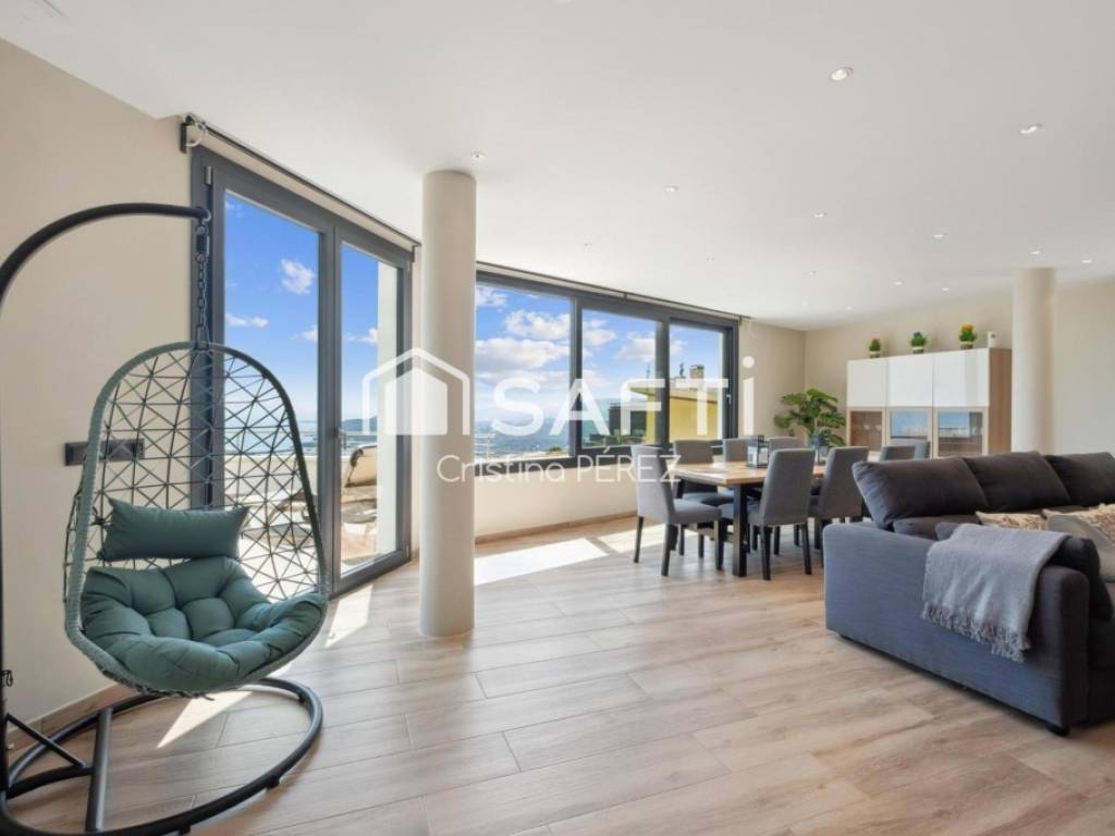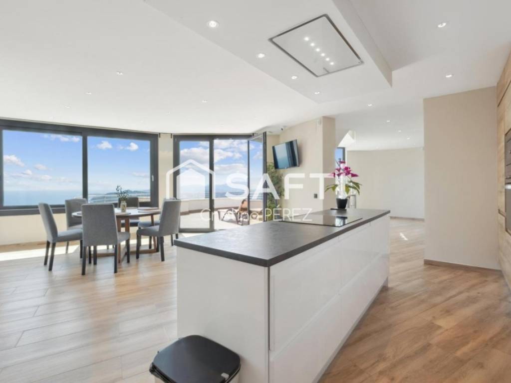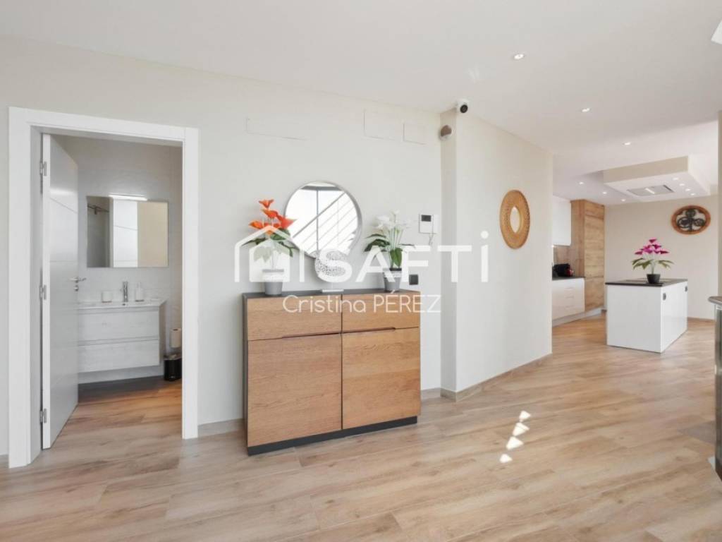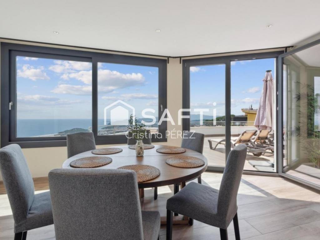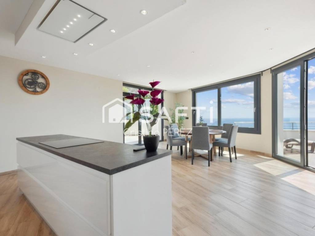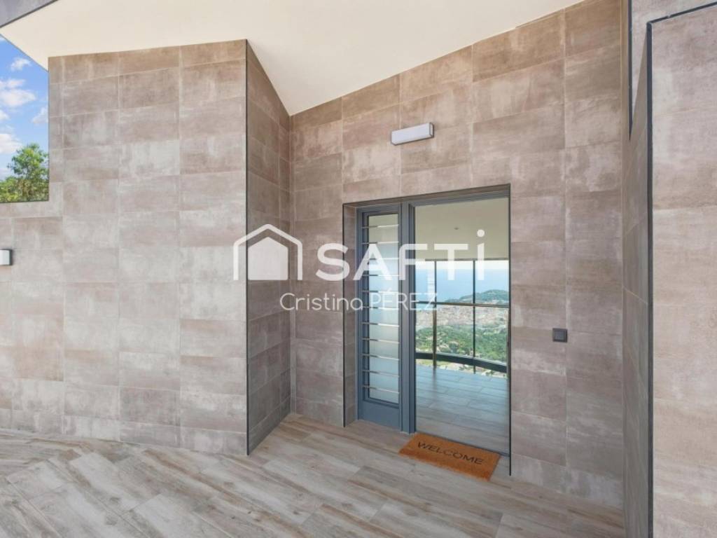 The property is distributed over three comfortable levels, with the possibility of installing an elevator. It features a spacious and bright main living room with a linear fireplace, a modern open-plan kitchen perfectly integrated into the space with access to a sea-view terrace, five spacious bedrooms, and five bathrooms (three of which are en-suite). Large garage and a spacious multi-purpose room.