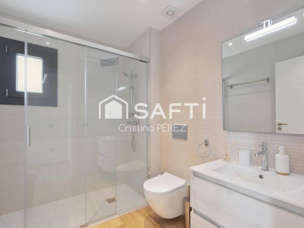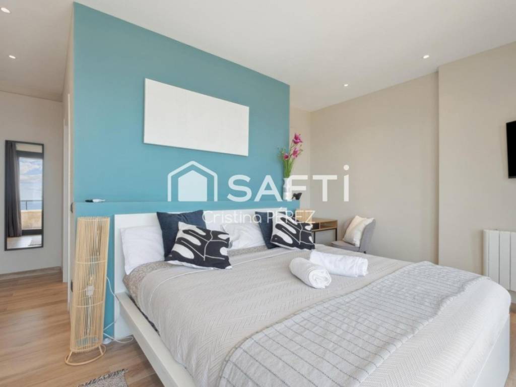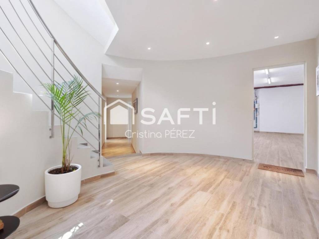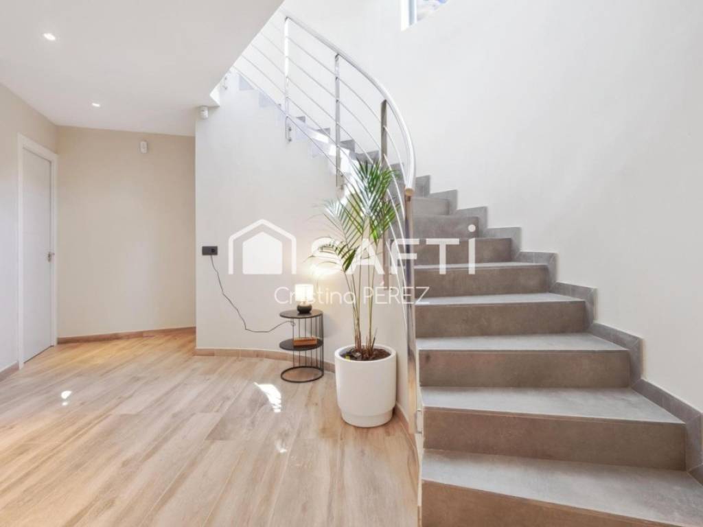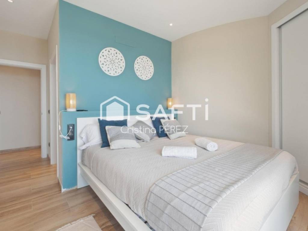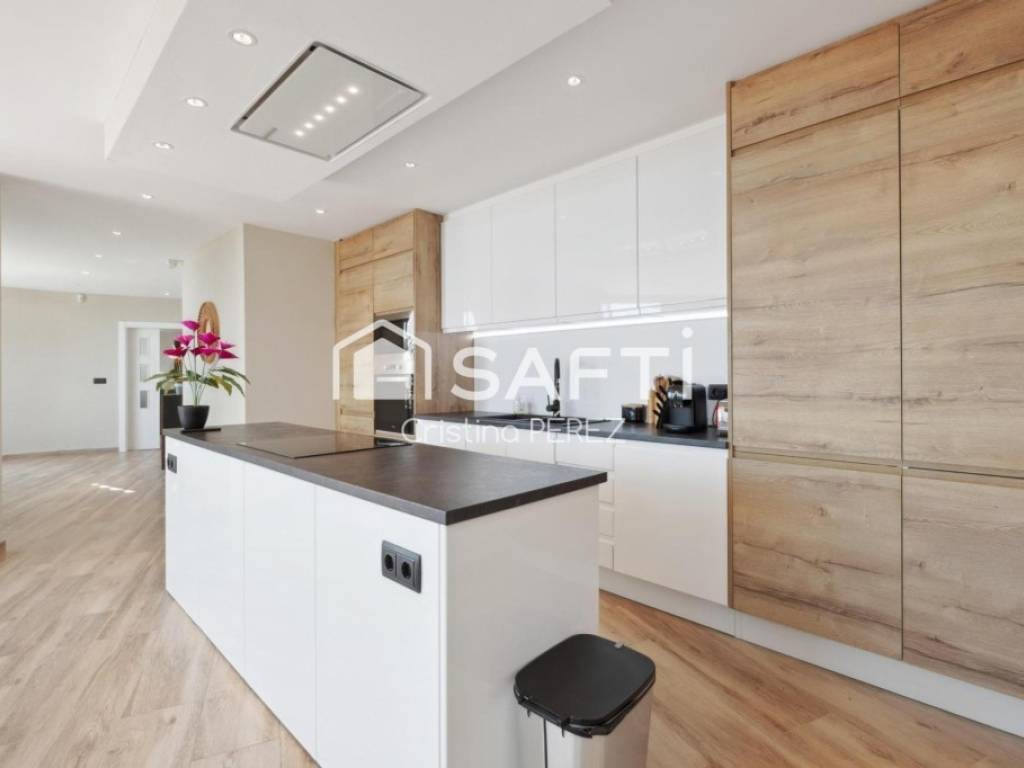 The property is distributed over three comfortable levels, with the possibility of installing an elevator. It features a spacious and bright main living room with a linear fireplace, a modern open-plan kitchen perfectly integrated into the space with access to a sea-view terrace, five spacious bedrooms, and five bathrooms (three of which are en-suite). Large garage and a spacious multi-purpose room.
