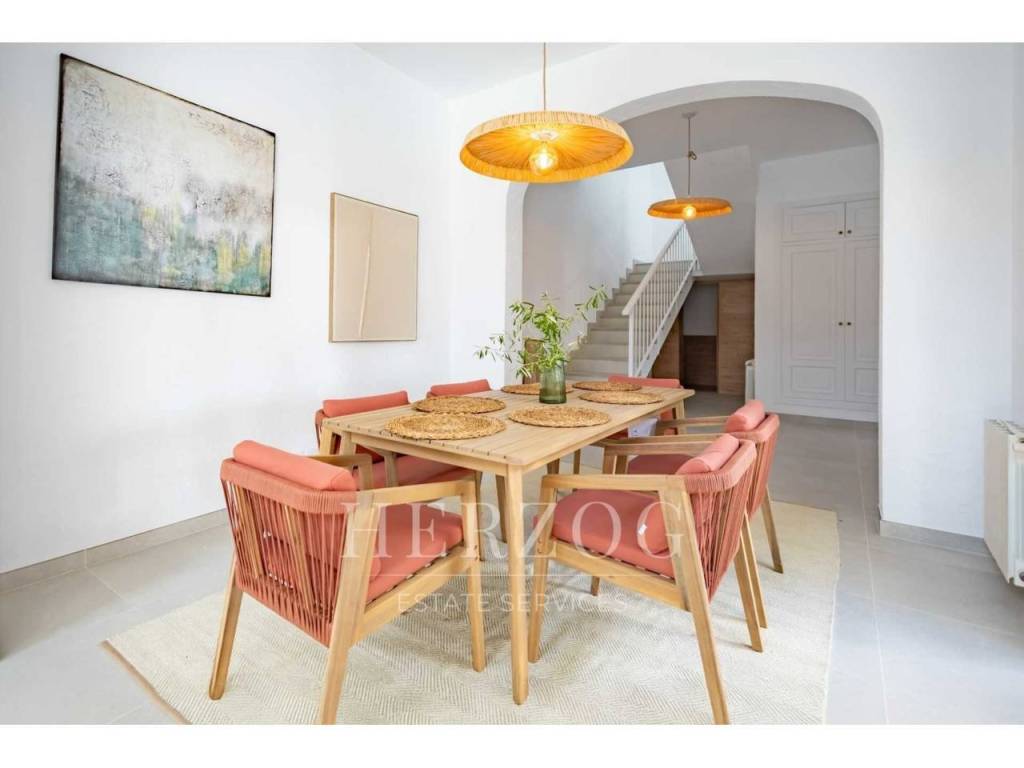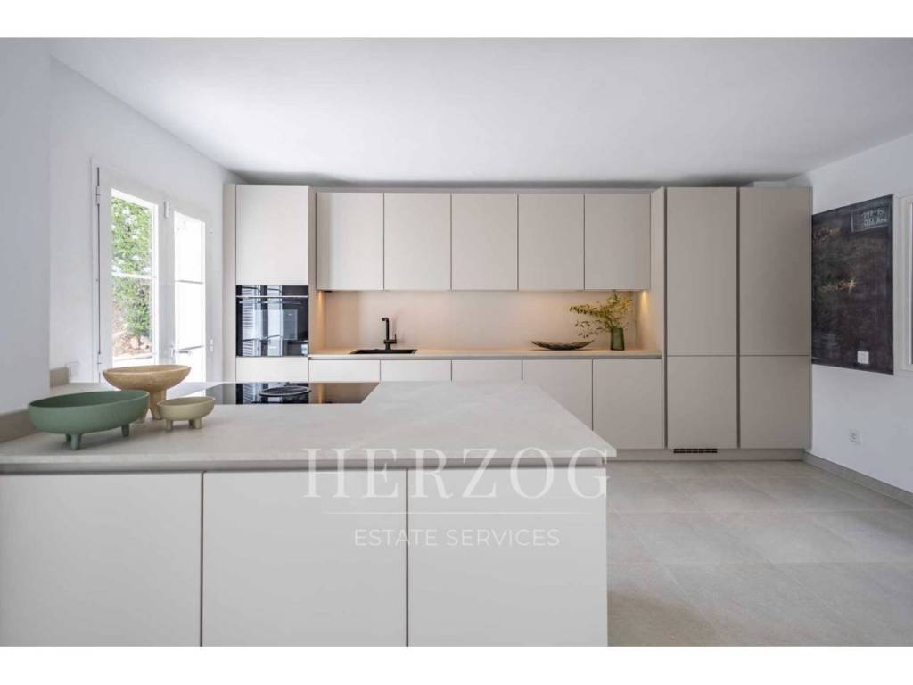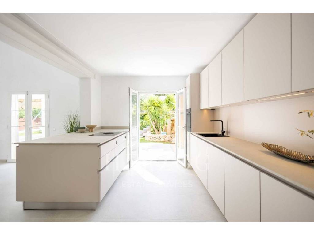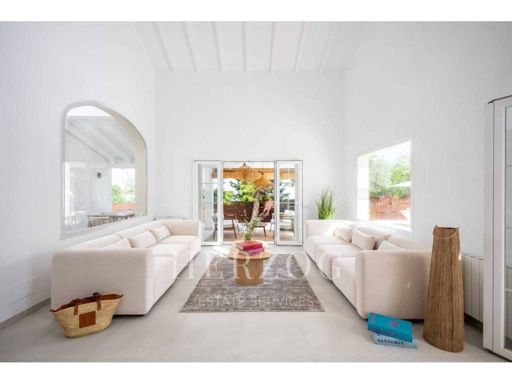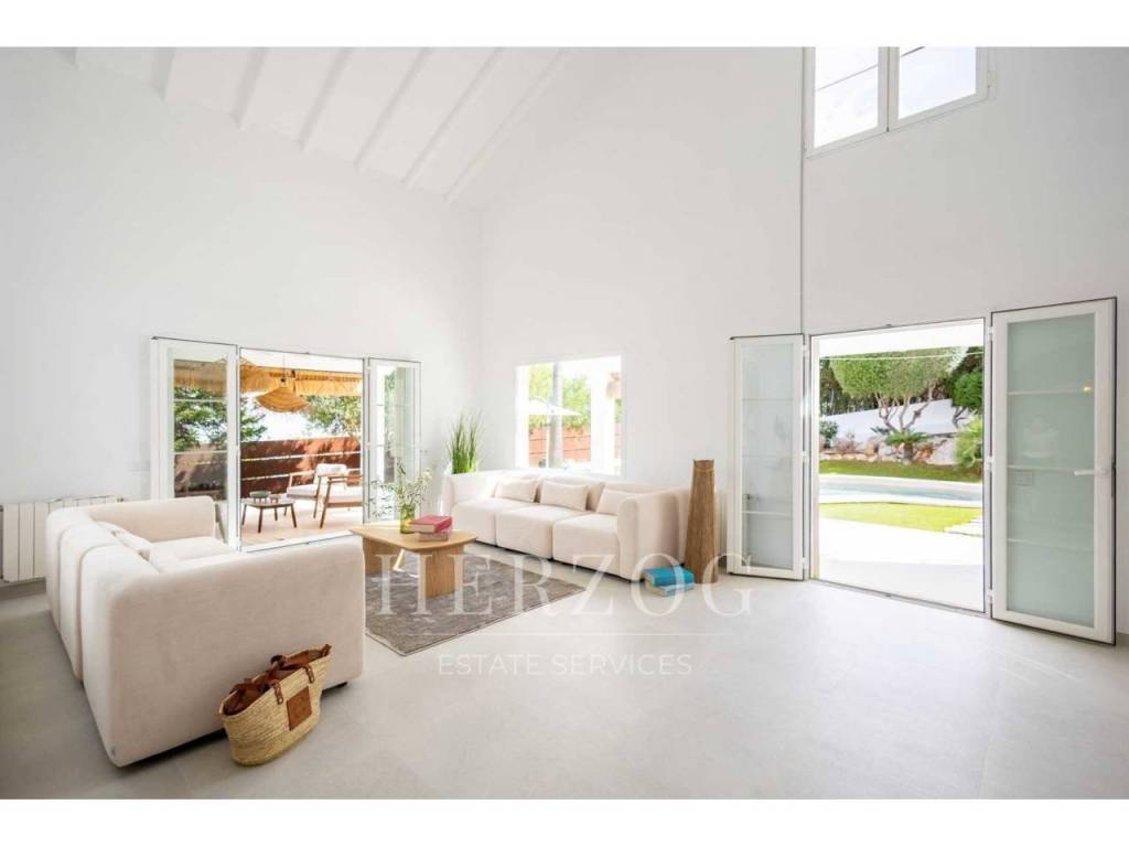 Cocina amueblada abierta y totalmente equipada, aire acondicionado frío/calor, calefacción central, piscina, garaje, vistas al mar, riego automático del jardín, techos altos, vigas de madera, y mucho más.