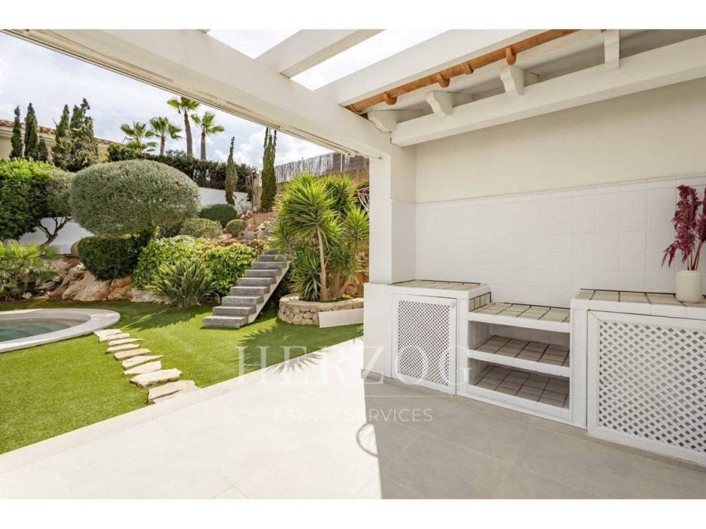 Esta villa familiar con vistas al mar desde la planta superior se encuentra en la exclusiva Nova Santa Ponsa, en el codiciado suroeste de Mallorca. La propiedad ha sido recientemente modernizada y ofrece 5 amplios dormitorios, 5 baños, la cocina equipada de alta calidad con isla de cocina y bar, el comedor independiente, así como la amplia sala de estar con doble altura y acceso a la terraza de la piscina. En el exterior, además de la piscina, hay varias terrazas cubiertas y descubiertas, las instalaciones para una cocina al aire libre, grandes extensiones de césped y una bolera. La calefacción central y el aire acondicionado hacen de esta villa una residencia confortable incluso en invierno. El apartamento independiente para invitados y el garaje completan la oferta.