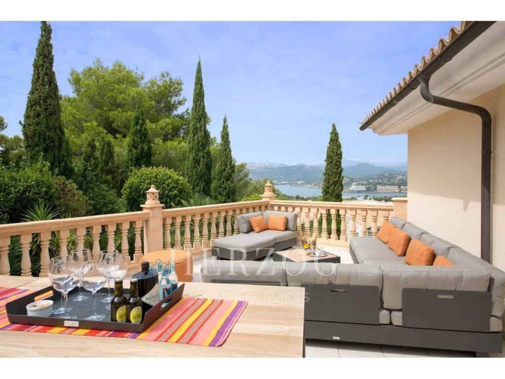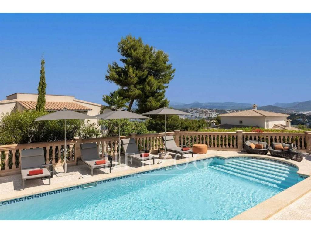 Esta exclusiva villa se encuentra en una zona residencial de alta calidad a las afueras de Santa Ponsa y ofrece impresionantes vistas a la bahía de Santa Ponsa y a la sierra de Tramuntana desde todas las habitaciones. La propiedad se encuentra en una parcela ajardinada de aprox. 1.000 m² con zonas ajardinadas mediterráneas, amplias terrazas y una piscina privada climatizada con energía solar. Una cocina de verano con barbacoa invita a disfrutar de la vida al aire libre. La villa combina la arquitectura tradicional española con la tecnología doméstica moderna y ofrece cómodas instalaciones, como aire acondicionado e Internet de fibra óptica. Con un generoso espacio habitable, la propiedad está inundada de luz y amueblada con estilo. Varias terrazas con zonas para sentarse y comer ofrecen la oportunidad de disfrutar de las puestas de sol mallorquinas en un ambiente relajado. La ubicación elevada garantiza la privacidad, mientras que el puerto deportivo de Santa Ponsa, el centro de la ciudad, las playas y los renombrados campos de golf de la zona se puede llegar en pocos minutos. El exclusivo puerto deportivo Port Adriano, con sus boutiques y restaurantes, así como Palma de Mallorca, con su infraestructura internacional, están a un corto trayecto en coche.
