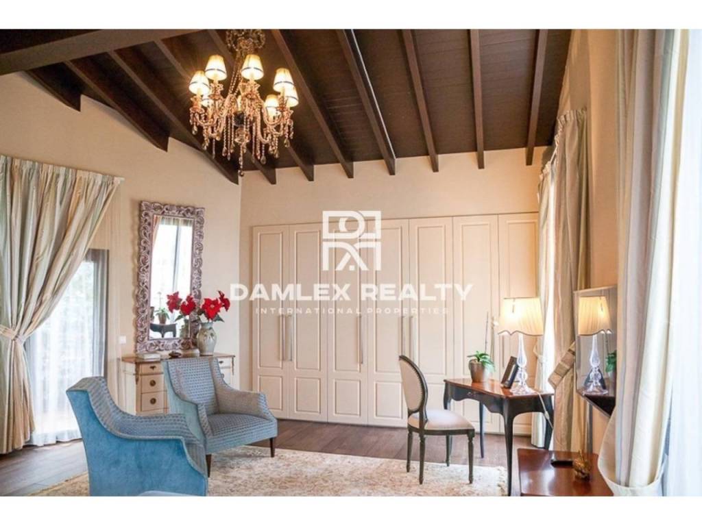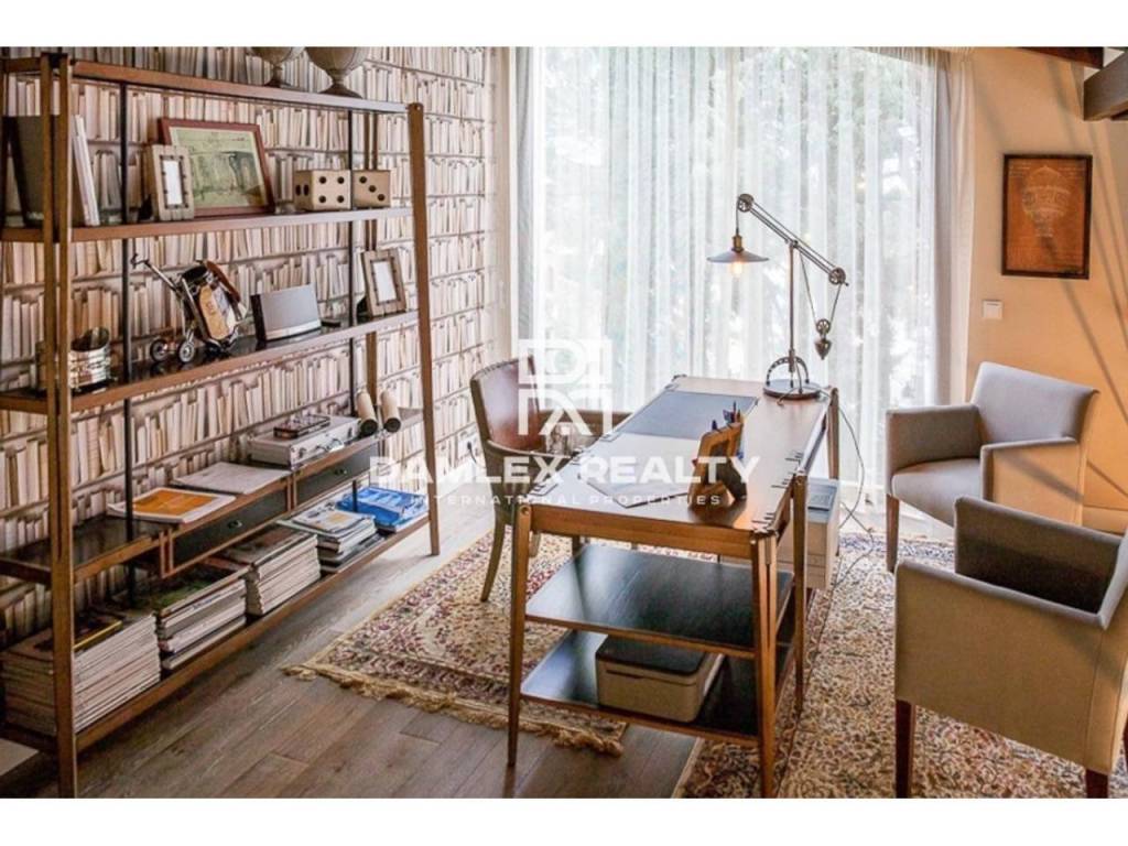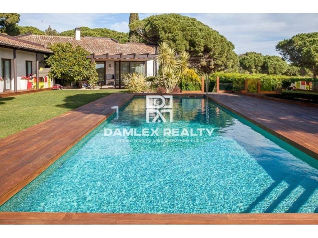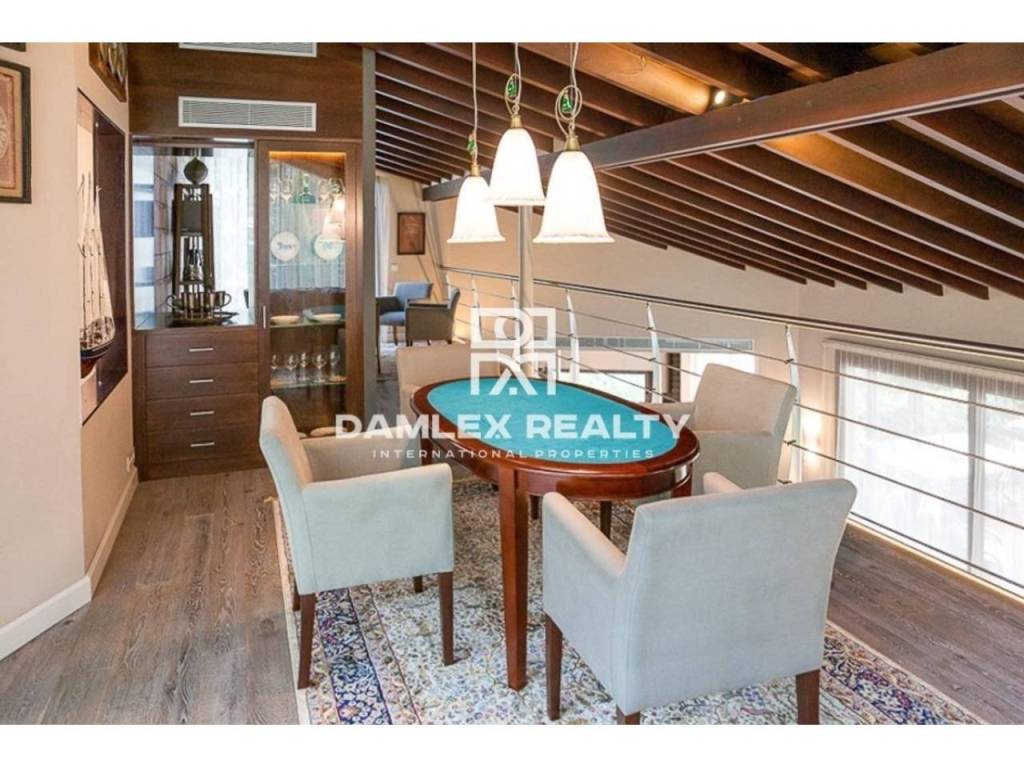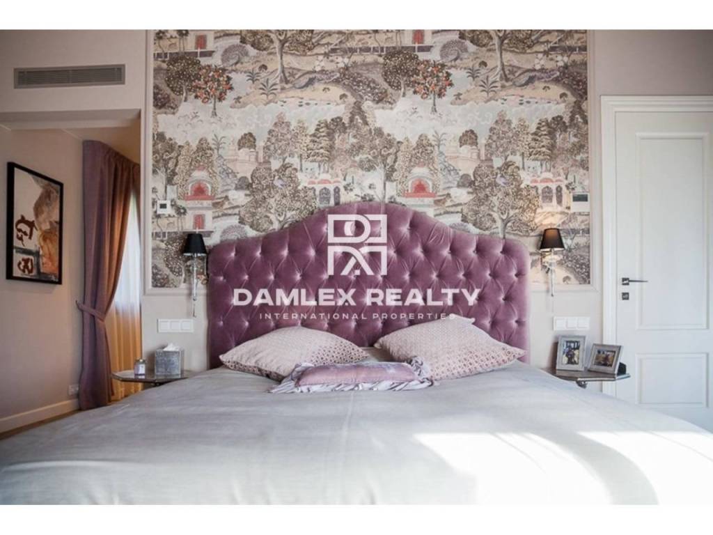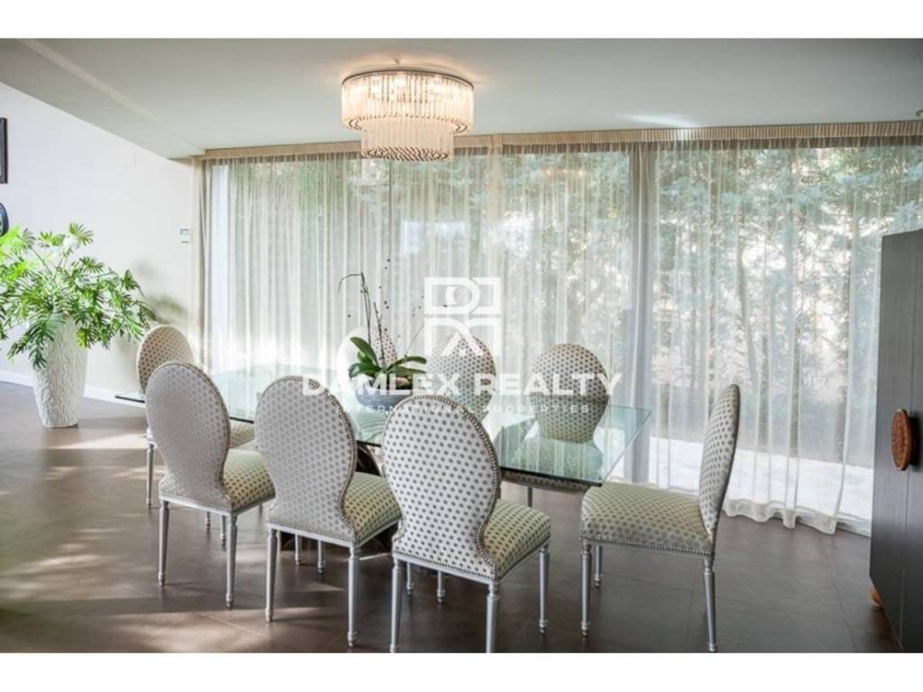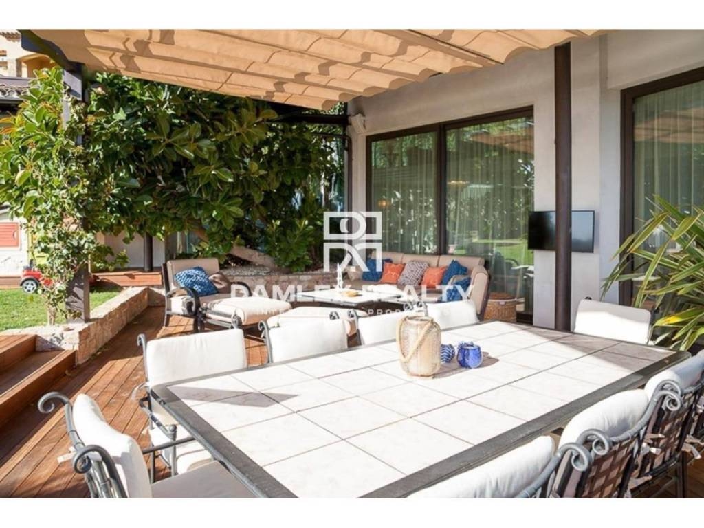 Modern Villa with unique design is located in the town of Calonge. This property for sale in Costa Brava is 500 m2. Large plot of 1600 m2 has a stunning garden and pool.This house in Costa Brava has 2 floors, 6 bedrooms, 4 bathrooms. On the ground floor there is a spacious living room with a two-level ceiling. Large panoramic windows offer magnificent view of the sea. The villa is sold fully furnished. For the interior decoration of the villa used the best materials and installed Italian kitchen furniture by Roche Bobois. Also in the house is installed elite appliances, Italian sanitary engineering, parquet flooring and outdoor staircase of marble. The house has a home cinema, SPA Zone with sauna and jacuzzi with stunning relaxation area.The villa has video surveillance, internet, heating and air conditioning. This house for sale in Costa Brava is located just 500 meters from the sea.