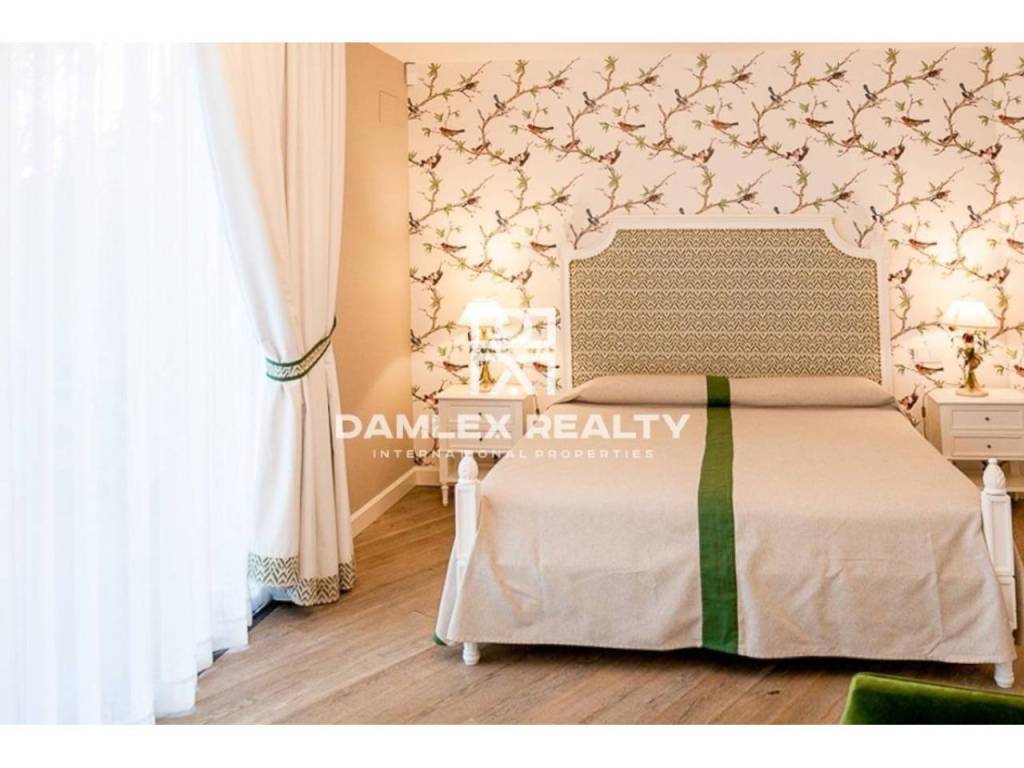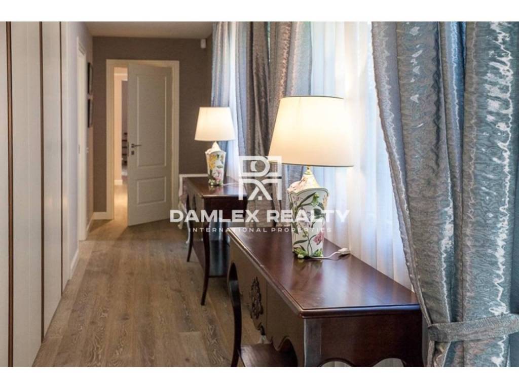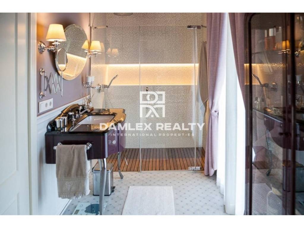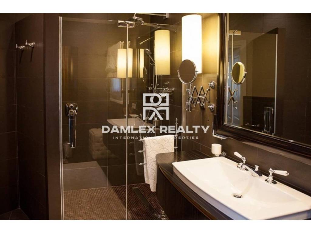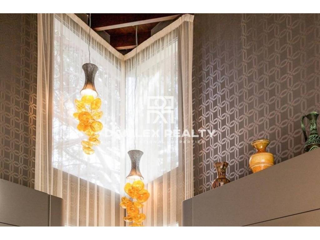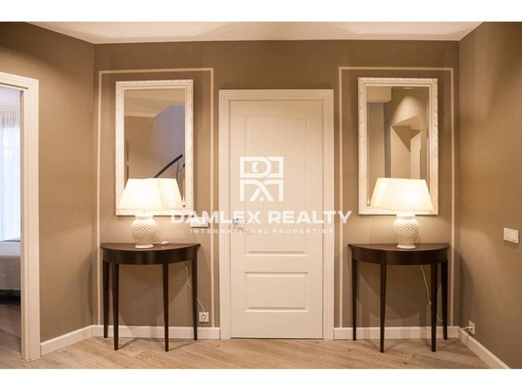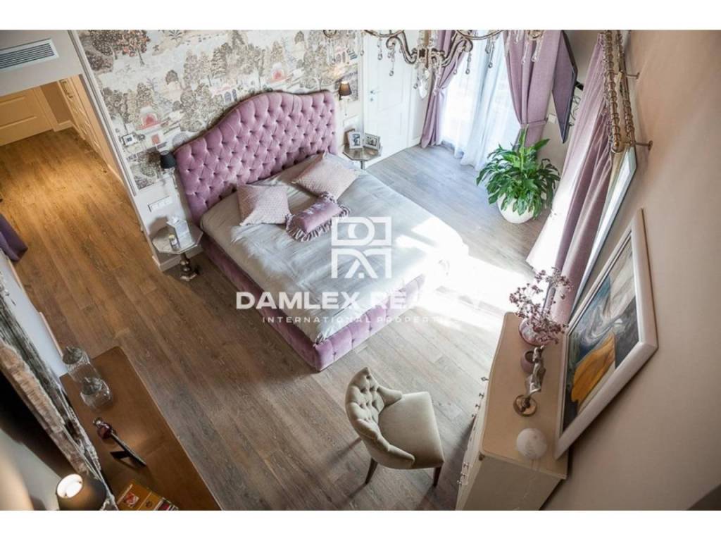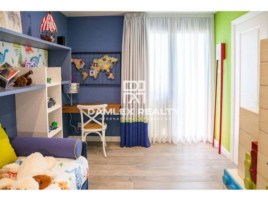 Modern Villa with unique design is located in the town of Calonge. This property for sale in Costa Brava is 500 m2. Large plot of 1600 m2 has a stunning garden and pool.This house in Costa Brava has 2 floors, 6 bedrooms, 4 bathrooms. On the ground floor there is a spacious living room with a two-level ceiling. Large panoramic windows offer magnificent view of the sea. The villa is sold fully furnished. For the interior decoration of the villa used the best materials and installed Italian kitchen furniture by Roche Bobois. Also in the house is installed elite appliances, Italian sanitary engineering, parquet flooring and outdoor staircase of marble. The house has a home cinema, SPA Zone with sauna and jacuzzi with stunning relaxation area.The villa has video surveillance, internet, heating and air conditioning. This house for sale in Costa Brava is located just 500 meters from the sea.
