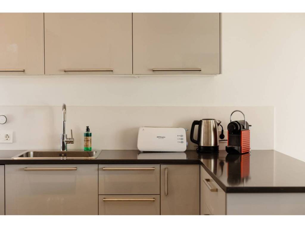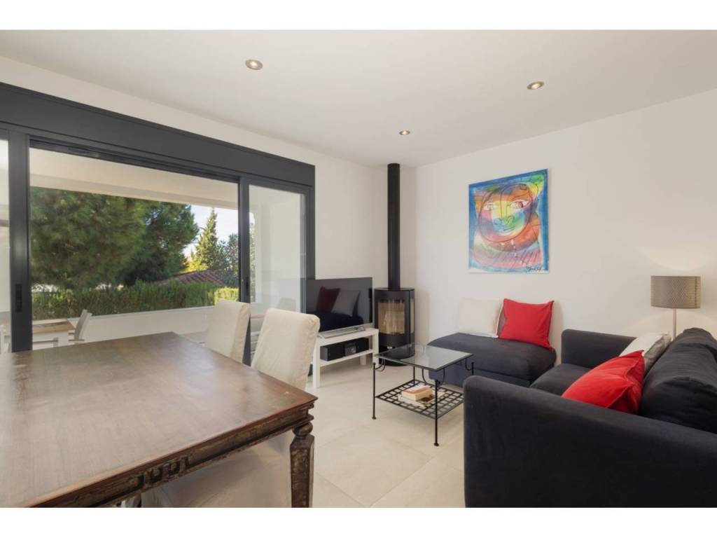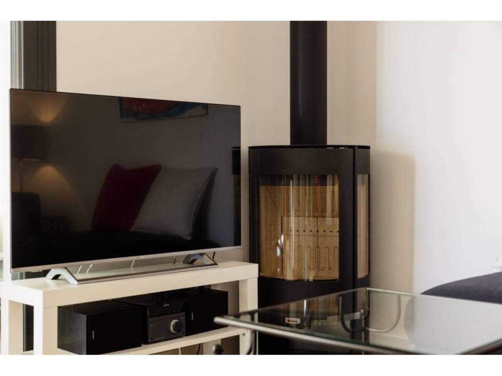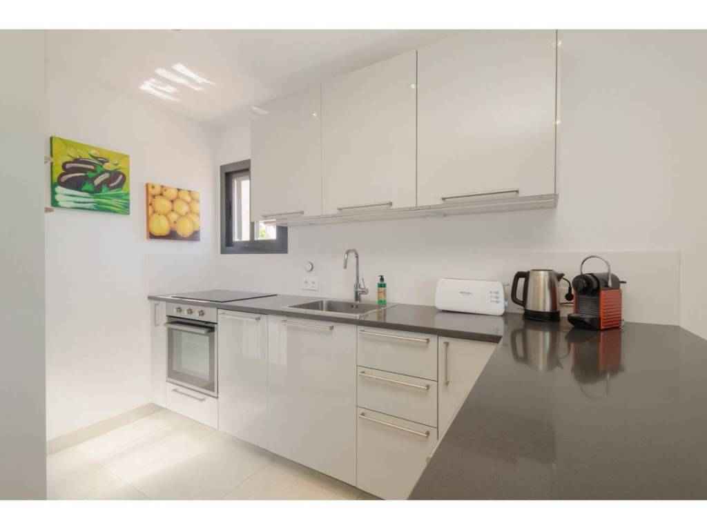 The open-plan kitchen comes fully fitted with oven, refrigerator, coffee maker, kettle, and all necessary cookware. Step outside to discover a covered terrace with dining table, perfect for al fresco meals, plus a private garden with sun loungers for relaxation. Fire up the Weber barbecue for delicious grilled meals while enjoying the peaceful garden views.