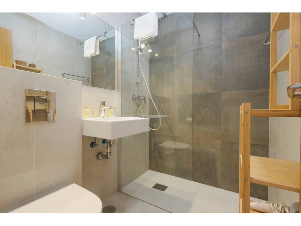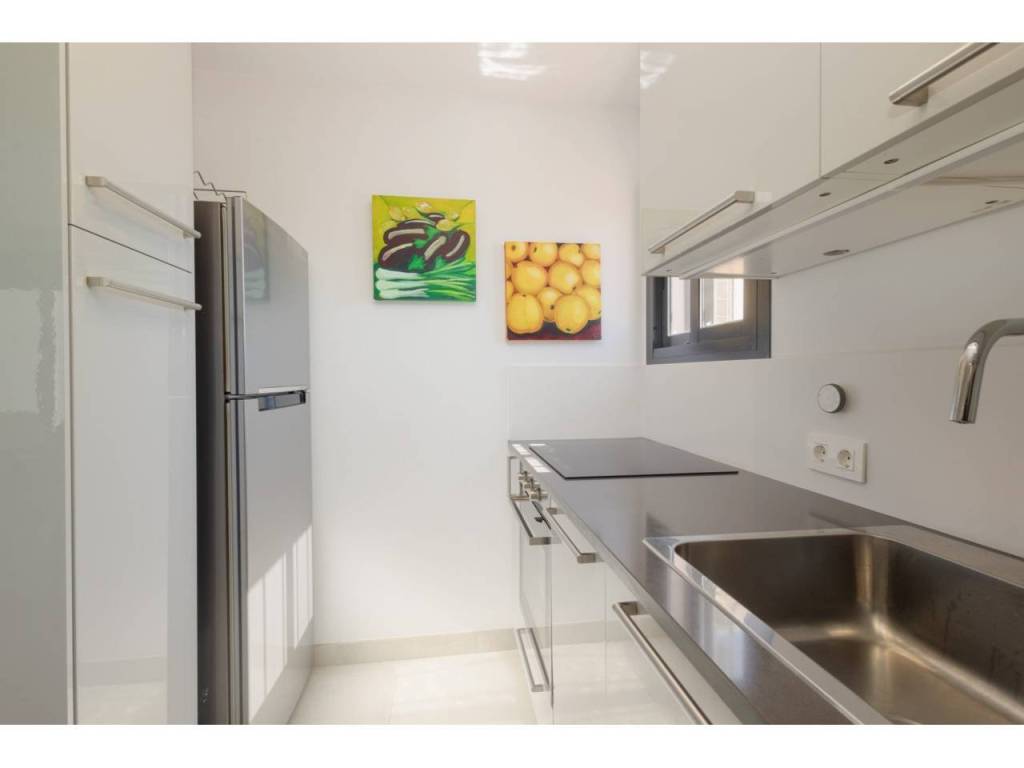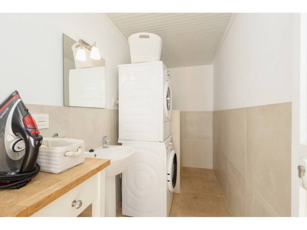 Practical amenities include underfloor heating in bathrooms, fiber optic internet, washing machine, dryer, and two private parking spaces - one covered garage plus an outdoor space. The property is fully furnished and equipped for immediate occupancy.