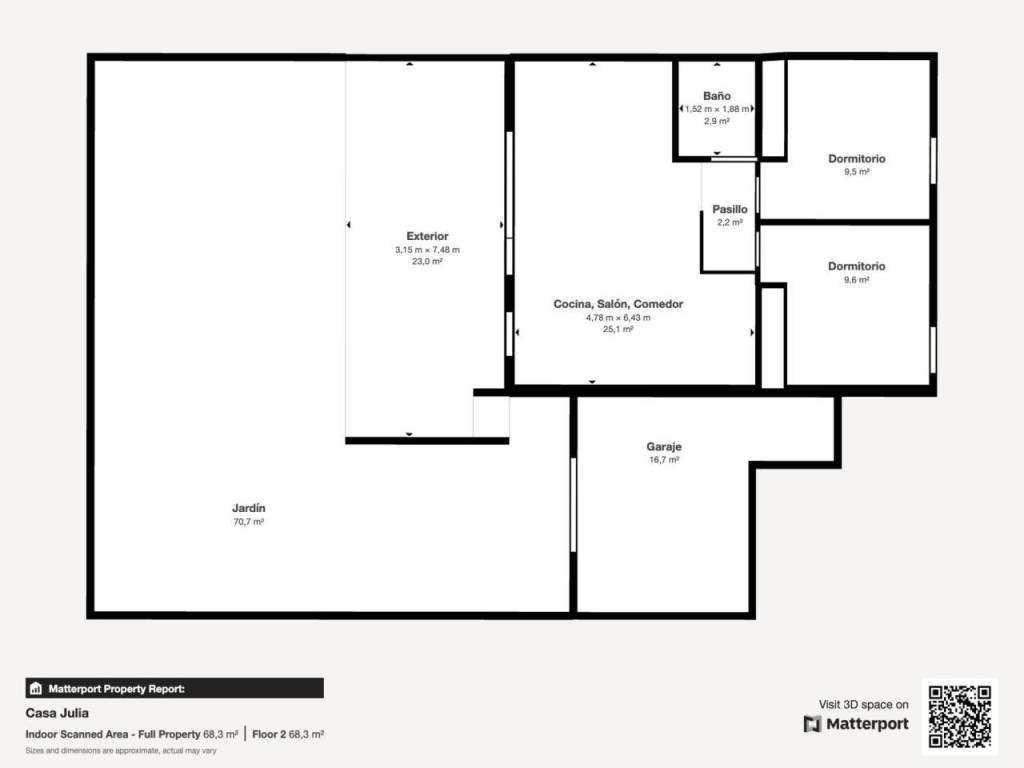 This recently renovated single-story house welcomes you with a bright living-dining area featuring a cozy fireplace, electric blinds, and smart TV. The main bedroom includes a double bed, while the second bedroom offers two 90cm beds. Both bedrooms feature air conditioning for year-round comfort. The fully equipped bathroom includes a shower, with an additional outdoor toilet in the garden area for convenience.