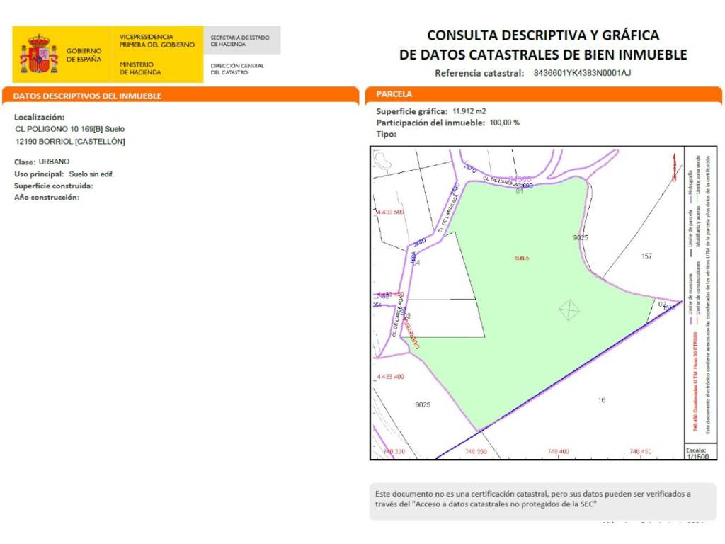 -Edificabilidad: Sobre parcela neta 1 m2t/m2s -Parcela mínima: 500m² -Ocupación máxima: 50% de la parcela -Altura máxima 7m -Referencia catastral: 8436601YK4383N0001AJ