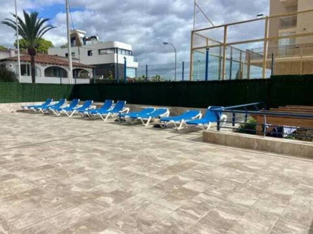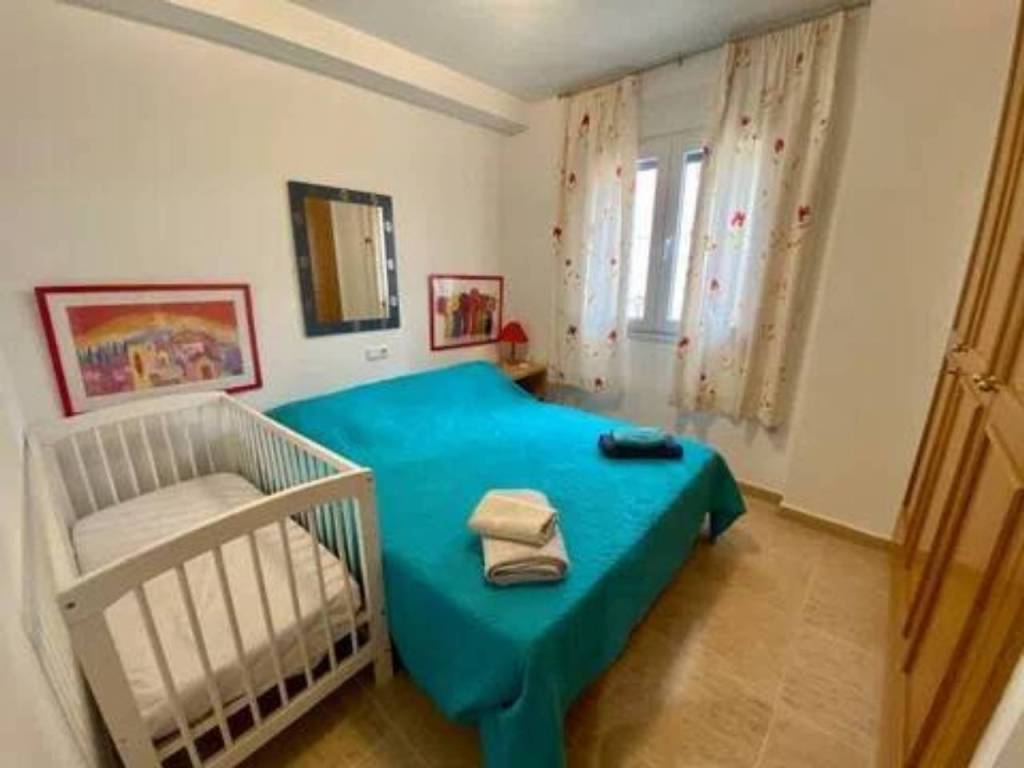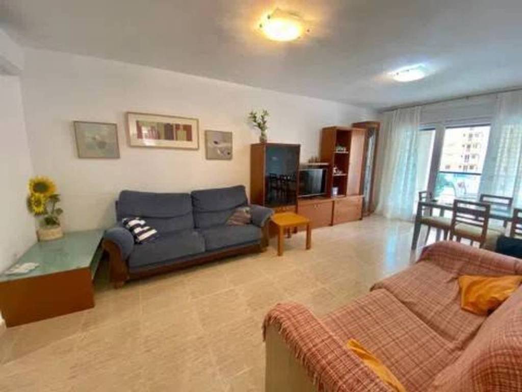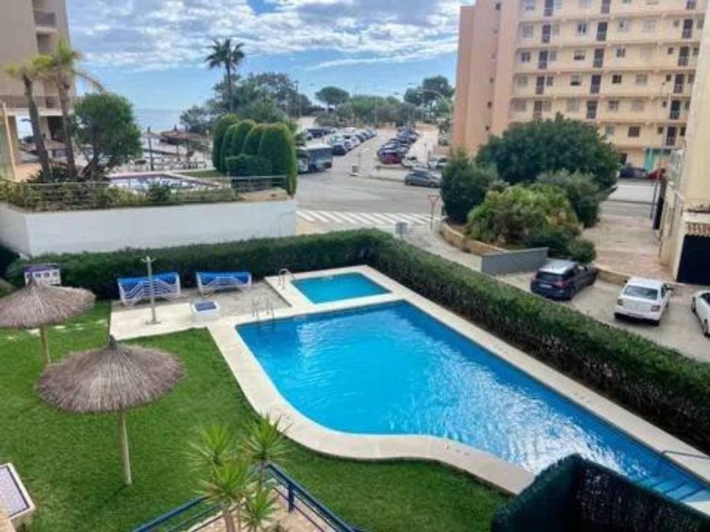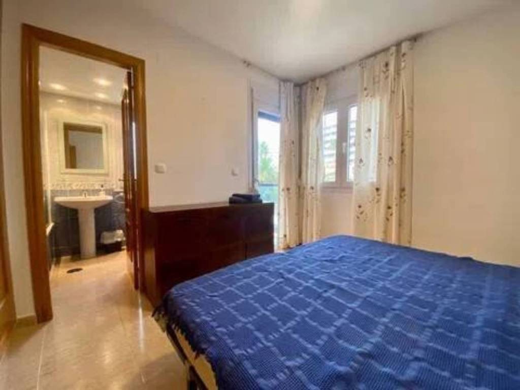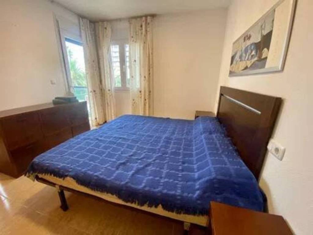 Se alquila espacioso piso en segunda línea con vistas al mar en una urbanización residencial muy bien cuidada con zonas verdes, piscina comunitaria con hamacas y sombrillas, área de picnic, parque infantil, zona de juegos al aire libre (portería y cesta de baloncesto), sala de reuniones con mesa de pin pong, mesa de Futbol, tele grande y proyector para ver películas. El apartamento tiene un recibidor, 2 dormitorios dobles con armarios empotrados, ventanas de doble acristalamiento, persianas y nuevas máquinas de aire acondicionado frío - calor. Uno de los dormitorios tiene baño en suite con bañera y balcón con vistas al mar. Luego también hay otro baño completo con ducha. El espacioso salón, equipado con nueva máquina de aire acondicionado frío - calor, tiene salida a una grande terraza con vistas al mar de la piscina. La terraza está conectada con una cocina independiente totalmente equipada. El piso está muy bien ubicado, cerca de la playa, restaurantes, paseo marítimo y supermercados como Mercadona y Consum.