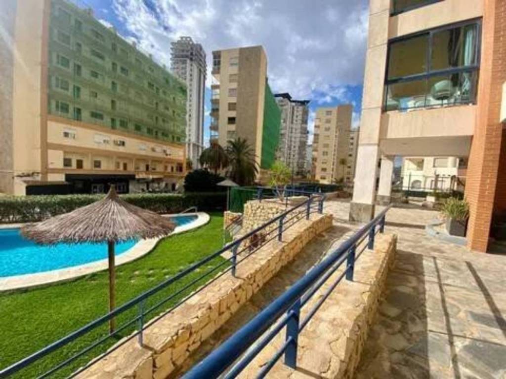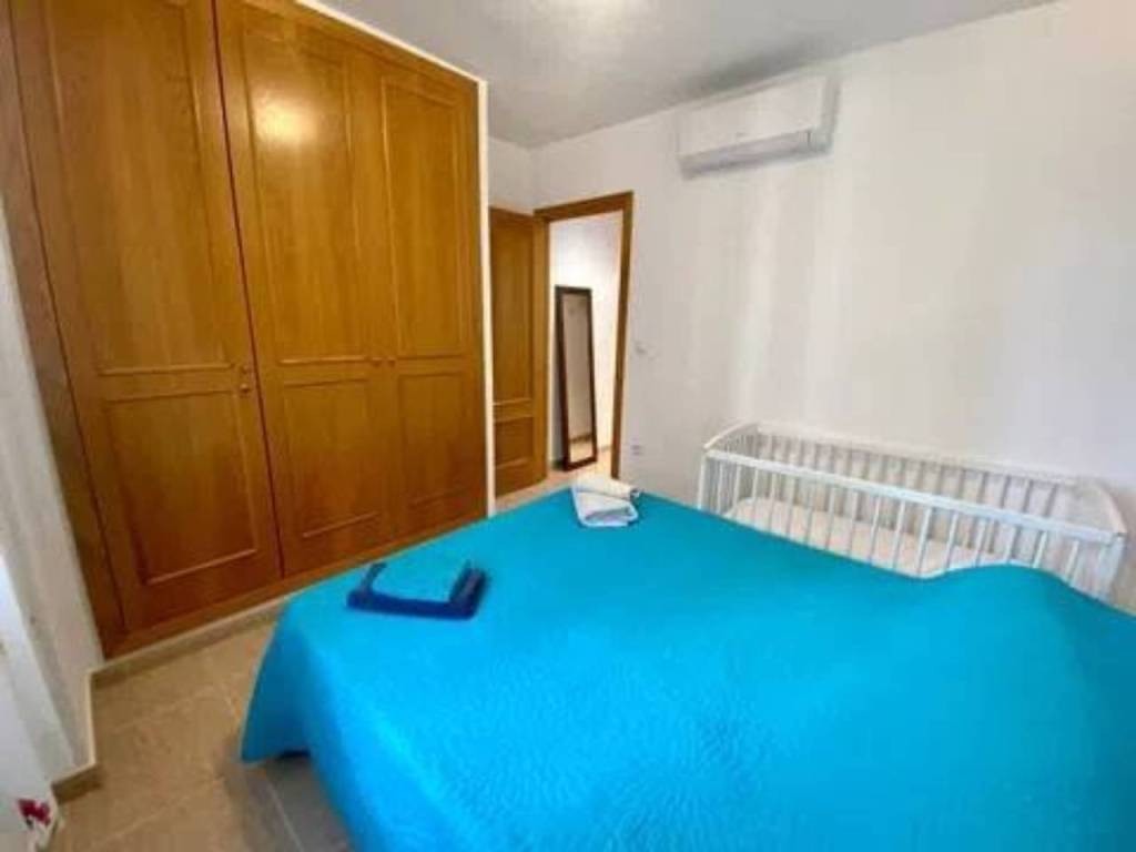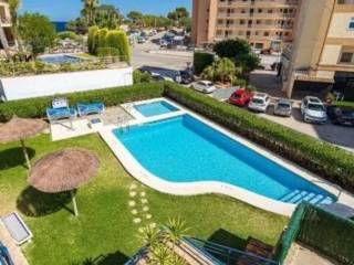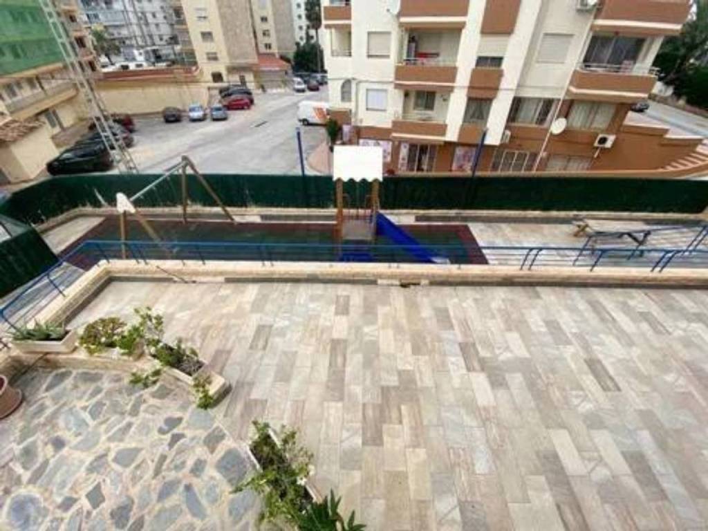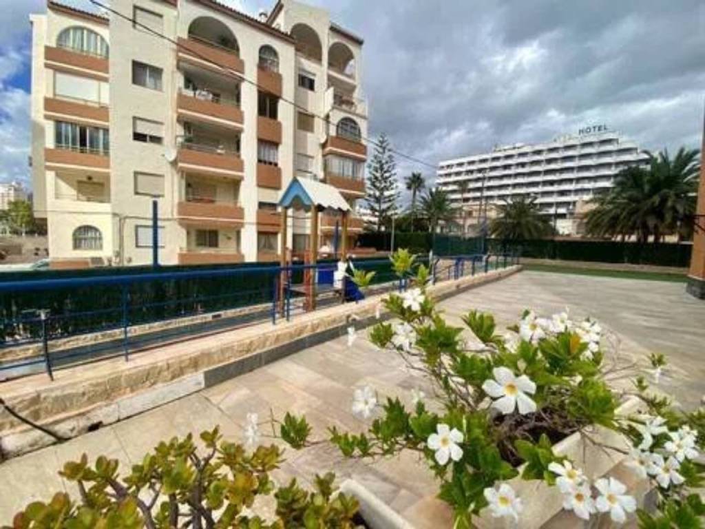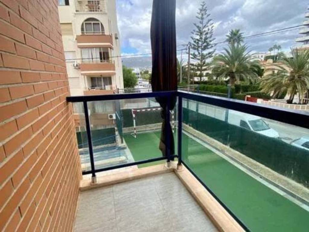 Se alquila espacioso piso en segunda línea con vistas al mar en una urbanización residencial muy bien cuidada con zonas verdes, piscina comunitaria con hamacas y sombrillas, área de picnic, parque infantil, zona de juegos al aire libre (portería y cesta de baloncesto), sala de reuniones con mesa de pin pong, mesa de Futbol, tele grande y proyector para ver películas. El apartamento tiene un recibidor, 2 dormitorios dobles con armarios empotrados, ventanas de doble acristalamiento, persianas y nuevas máquinas de aire acondicionado frío - calor. Uno de los dormitorios tiene baño en suite con bañera y balcón con vistas al mar. Luego también hay otro baño completo con ducha. El espacioso salón, equipado con nueva máquina de aire acondicionado frío - calor, tiene salida a una grande terraza con vistas al mar de la piscina. La terraza está conectada con una cocina independiente totalmente equipada. El piso está muy bien ubicado, cerca de la playa, restaurantes, paseo marítimo y supermercados como Mercadona y Consum.