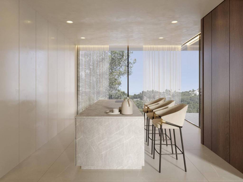 Luxury Contemporary Villa with Sea Views in Benimeit Moraira This exclusive contemporary villa perfectly combines functionality, elegant architecture and premium quality finishes. Located in the sought after residential area of Benimeit in Moraira, the property sits on an elevated hillside plot offering open panoramic views across the surrounding landscape and towards the Mediterranean Sea. The villa is situated less than 3 km from the coastline, providing the perfect balance between privacy, tranquility and easy access to the beach and local amenities. The design of the home has been carefully conceived to create a seamless connection between indoor and outdoor living spaces, maximizing natural light and allowing the beautiful surroundings to become part of everyday living. Spacious Open Plan Living with Seamless Indoor Outdoor Flow The ground floor features a large open plan living and dining area that connects directly with the exterior terraces and pool area. Floor to ceiling windows open the entire space to the outdoors, creating a bright and airy atmosphere while framing the panoramic views. The living room also opens towards the rear side of the property, allowing views on both sides and enhancing natural ventilation. The modern designer kitchen is equipped with high quality Savi cabinetry and premium Miele appliances, offering both style and functionality for everyday living and entertaining. The villa offers a thoughtful bedroom layout designed to maximize views and privacy. Two guest bedrooms open towards the east side of the property, while the ground floor master bedroom enjoys views towards the west. The entire ground floor maintains a strong connection with the exterior spaces, including a large covered terrace facing the infinity pool and views, as well as a more intimate rear pergola ideal for relaxing moments. The upper floor is dedicated exclusively to the impressive master suite, a spectacular space that crowns the property and enjoys nearly 180 degree panoramic views of the surrounding landscape and the Mediterranean Sea. This luxury property includes top quality materials and advanced technology throughout the home. Features include Technal windows with argon insulation, underfloor heating and ducted air conditioning with heat pump, and a smart home automation system by Niessen FreeHome with individual room temperature control through Airzone. Additional features include a passenger elevator connecting all three levels, a fully equipped laundry room with Miele appliances, a chlorine free infinity pool, 4.5 kW solar panels, alarm system, underground garage for two cars and an additional exterior parking space. Prime Location on the Costa Blanca Moraira is one of the most desirable coastal towns on the Costa Blanca, known for its charming marina, relaxed Mediterranean lifestyle and excellent gastronomy. The town offers beautiful beaches and coves such as Playa de l Ampolla, Cala Cap Blanc and the impressive Cala del Moraig. Key distances include Moraira town center 3 km, Playa de l Ampolla beach 3 km, Club de Golf Ifach 4 km, Marina Moraira port 3.5 km, Alicante International Airport 90 km and Valencia Airport 125 km. Contact us today for more information or to schedule a private viewing of this remarkable property. 655
