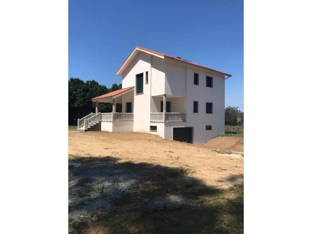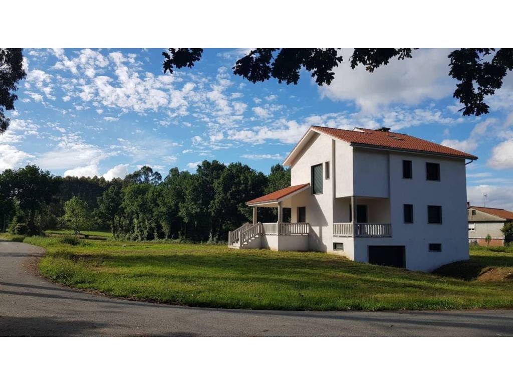 Vivienda unifamiliar con planta semisótano de 125m2 a garaje, planta baja a vivienda de 94m2 y primera planta a vivienda de 97m2). Cuenta con un porche en la planta baja de 14m2 y un bajo cubierta de 55m2. La vivienda está totalmente acabada en el exterior, pero se encuentra en obra en su interior. Enclavada en una finca de unos 6400m2 (ideal para bungalows) y en pleno Camino de Santiago a la entrada a la villa de Arzúa.