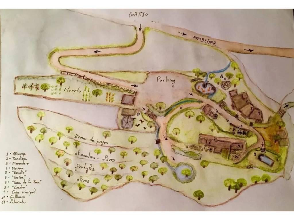 La finca cuenta además con piscina, zona de barbacoa y merendero, alberca de riego tradicional por acequia, y una tienda interior pensada para cubrir necesidades básicas de huéspedes, aportando un valor añadido a la experiencia y a la explotación. La propiedad se encuentra junto al pintoresco pueblo de Atalbeitar, un entorno auténtico y muy valorado por el turismo internacional.