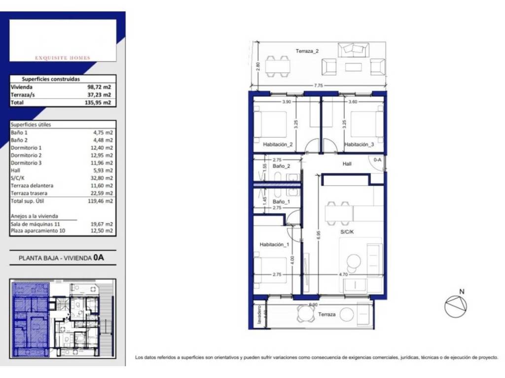 Ground floor: 3 bedrooms, 136 m². Terraces. Price: €351,750