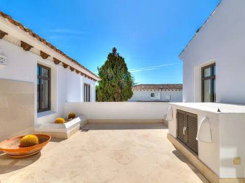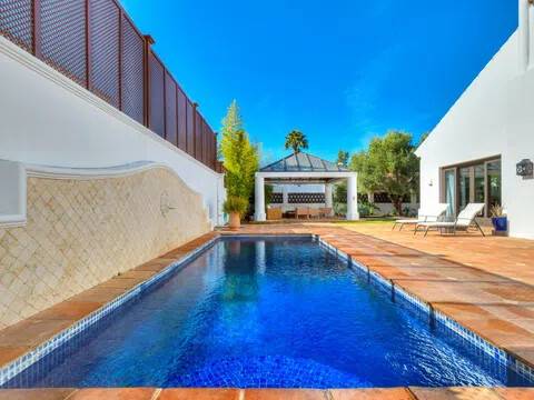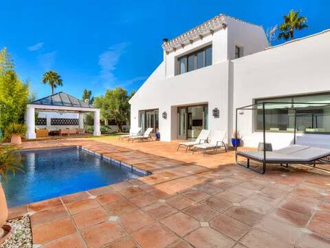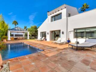 Esta hermosa casa es perfecta para una vida cómoda y elegante. Ubicada en una zona tranquila cerca del Club de Golf Guadalmina, tiendas y restaurantes, esta casa es lujosa y conveniente. Totalmente amueblado con materiales de alta gama como suelos y encimeras de baño de mármol crema, carpintería interior de madera oscura y carpintería exterior de teca con ventanas de doble acristalamiento, herrajes de bronce para un toque elegante. Calefacción por suelo radiante y agua caliente y calefacción a gas, aire acondicionado para confort durante todo el año, persianas enrollables, chimenea y alarma de seguridad 24 horas. Gran jardín con piscina, terrazas y plantas maduras.