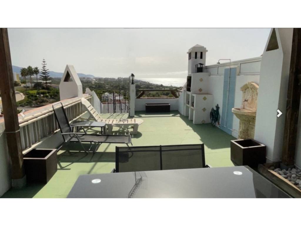 Dispone de una amplia azotea con orientación sur y vistas panorámicas al mar y a la montaña, pérgola, comedor, conexiones de agua y luz, barbacoa y trastero.